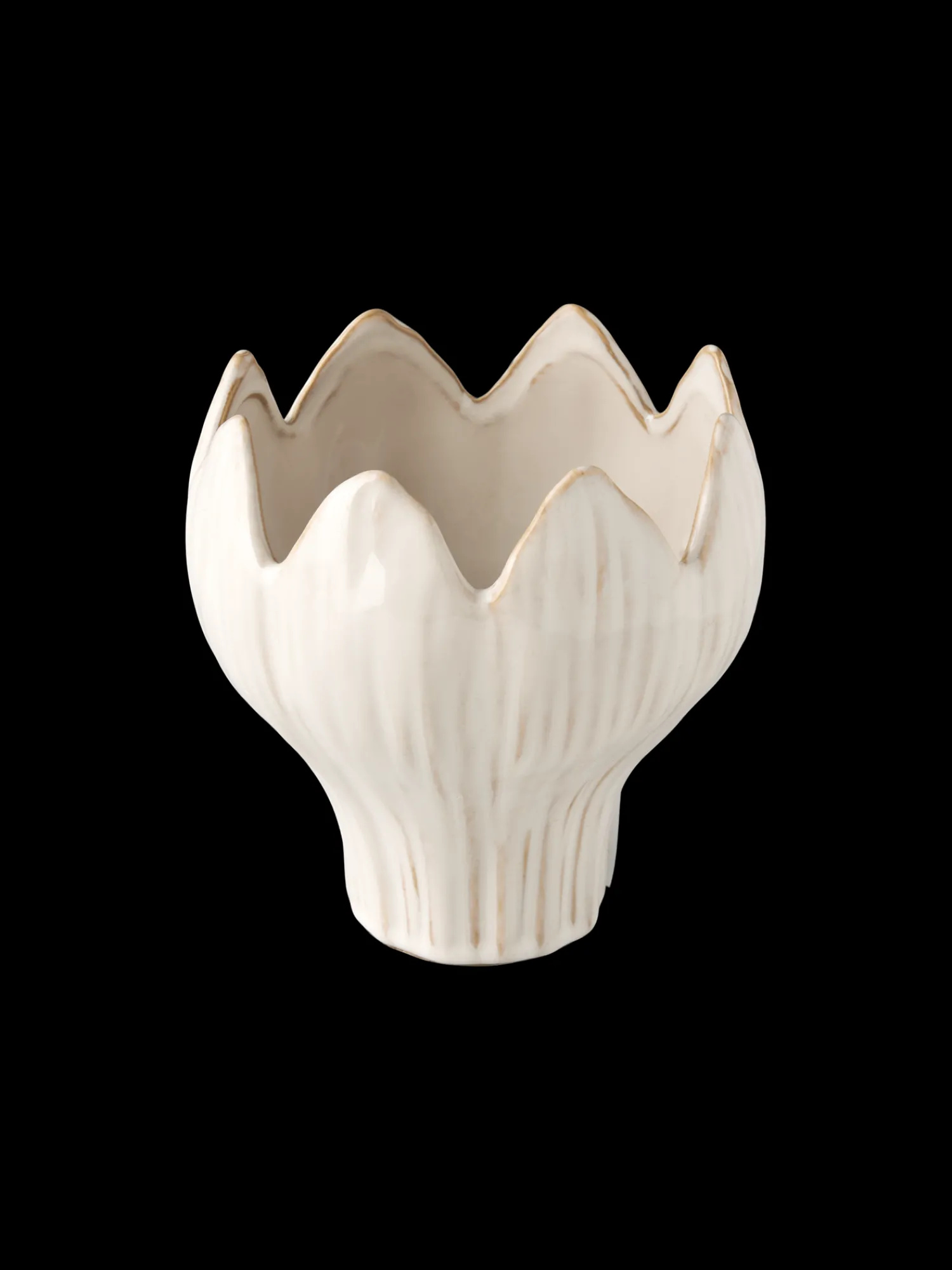 Søstrenes blomsterpotte har en interessant blomsterform, og den blir en nydelig bolig for plantene eller blomstene Deres – enten de er friske eller tørket.Søstrene legger vennlig til at siden dette produktet har glasur, kan uttrykket variere noe.