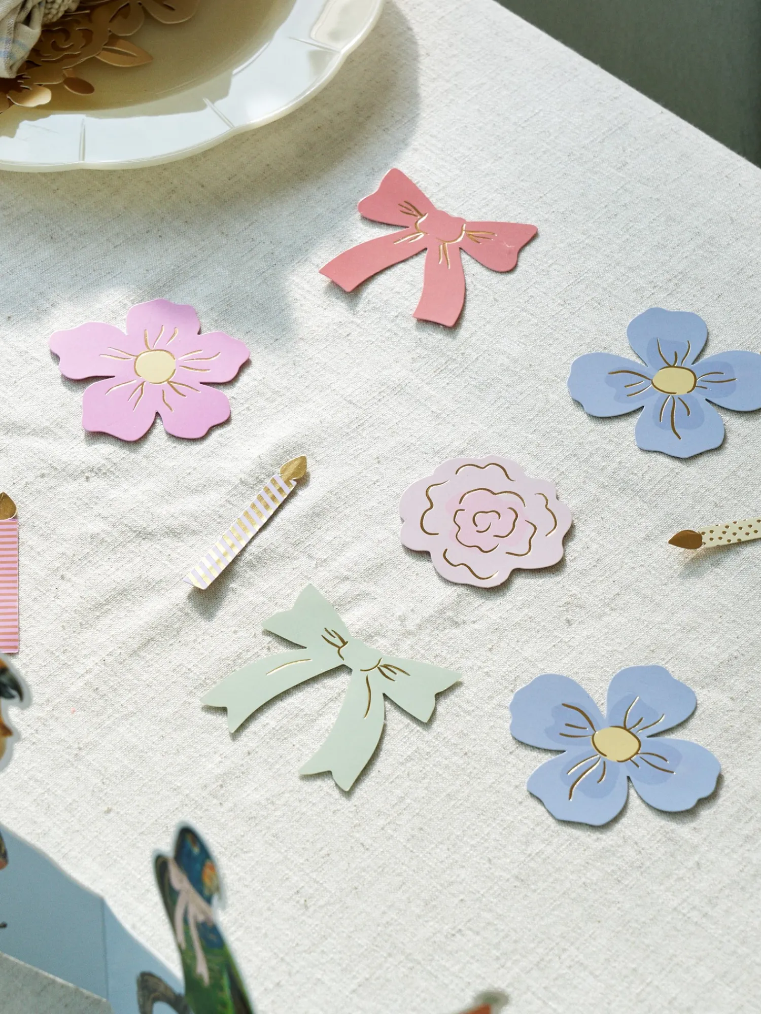 Søstrenes borddekorasjoner med festtema er laget av FSC®-sertifisert papir.