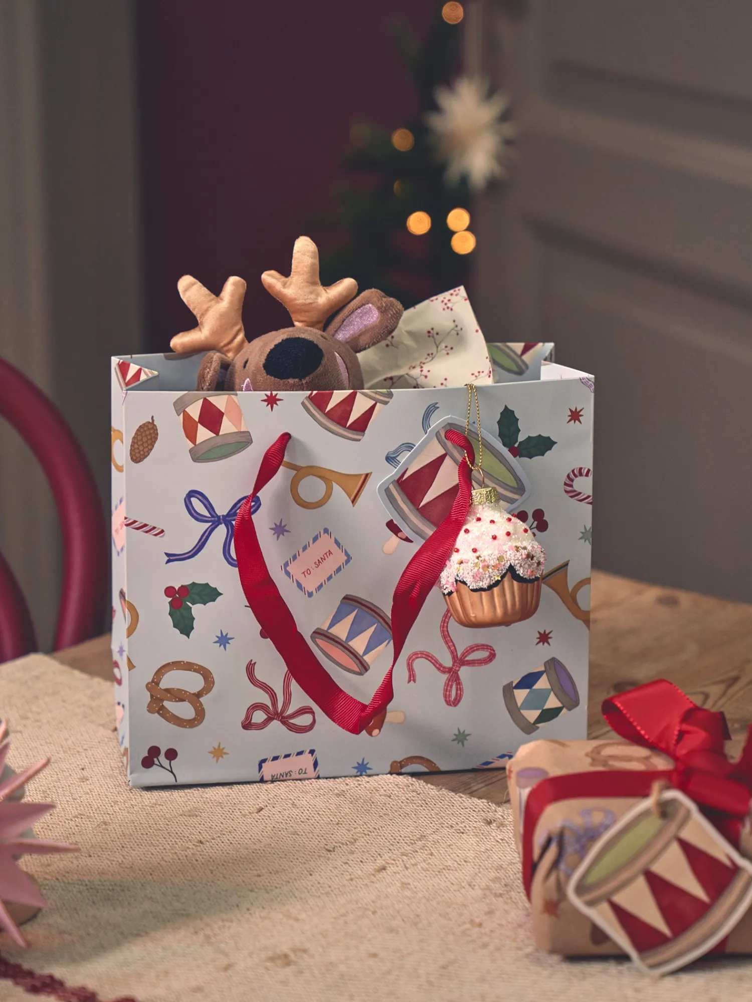 Søstrenes gavepose er laget av FSC®-sertifisert papir, og den har håndtak og en gavelapp som er festet. Gaveposer kan brukes igjen ved festlige anledninger, eller mottakeren kan bruke dem som en flott oppbevaringsløsning.