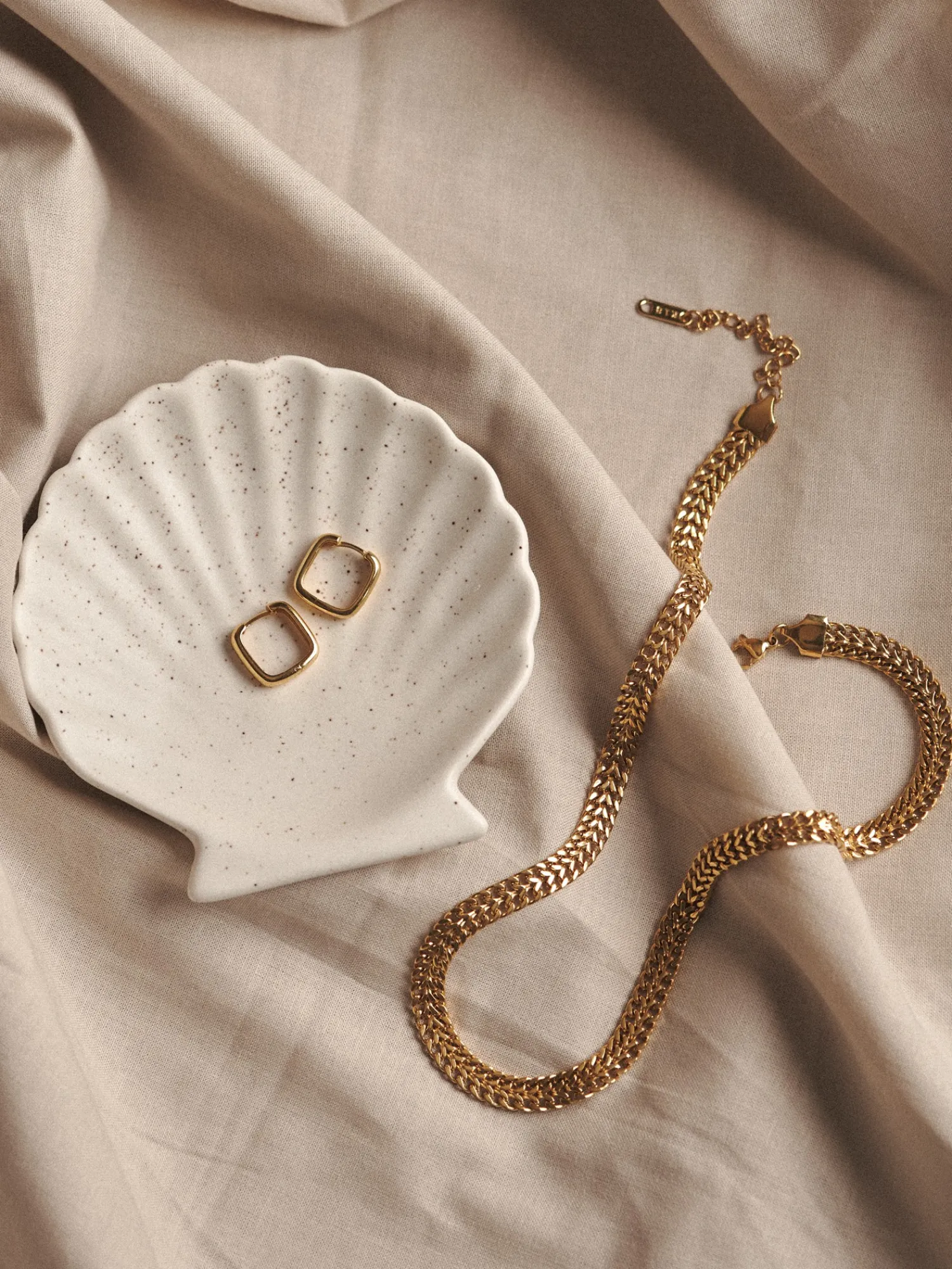 Søstrene minner vennlig om at dette produktet bare er tilgjengelig på nett.Hanna Hoop-øreringene fra AndCopenhagen er laget av 925 sterlingsølv som er belagt med 18 karat gull. Øreringene har en massiv, firkantet design, og de er 1 cm i diameter, 1,5 cm lange og 0,3 cm tykke.Anna og Clara minner vennlig om at De bør unngå direkte kontakt med fuktighet og væsker, slik at gullbelegget varer lenger.