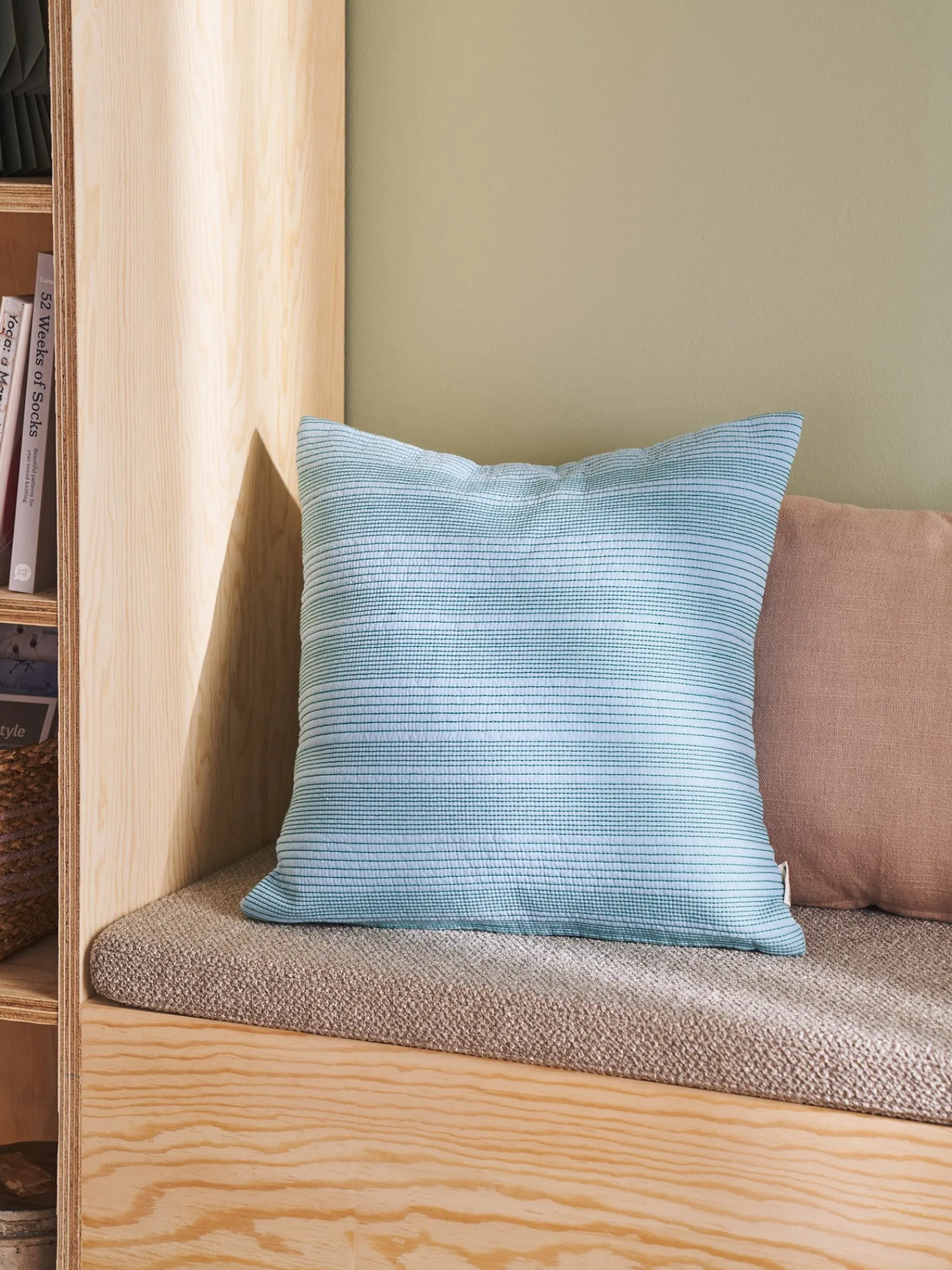Søstrenes pyntepute er laget av bomull med polyesterfyll, og den er STANDARD 100 by OEKO-TEX®-sertifisert*. Den er 45 x 45 cm.«Boligen slår an tonen for det livet vi ønsker å leve», sier Anna. «La fred i sinnet og hygge gro i hjemmet.»*11.HIN.92631 HOHENSTEIN HTTI