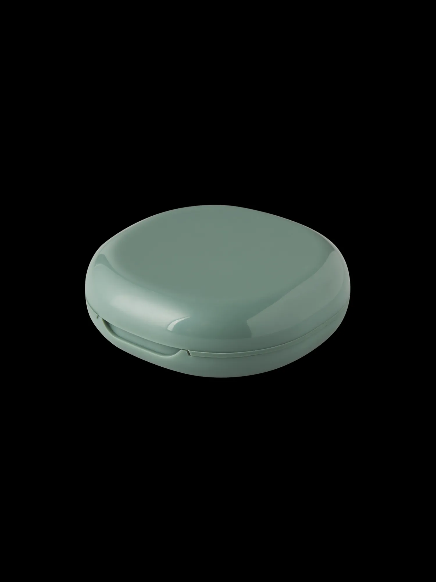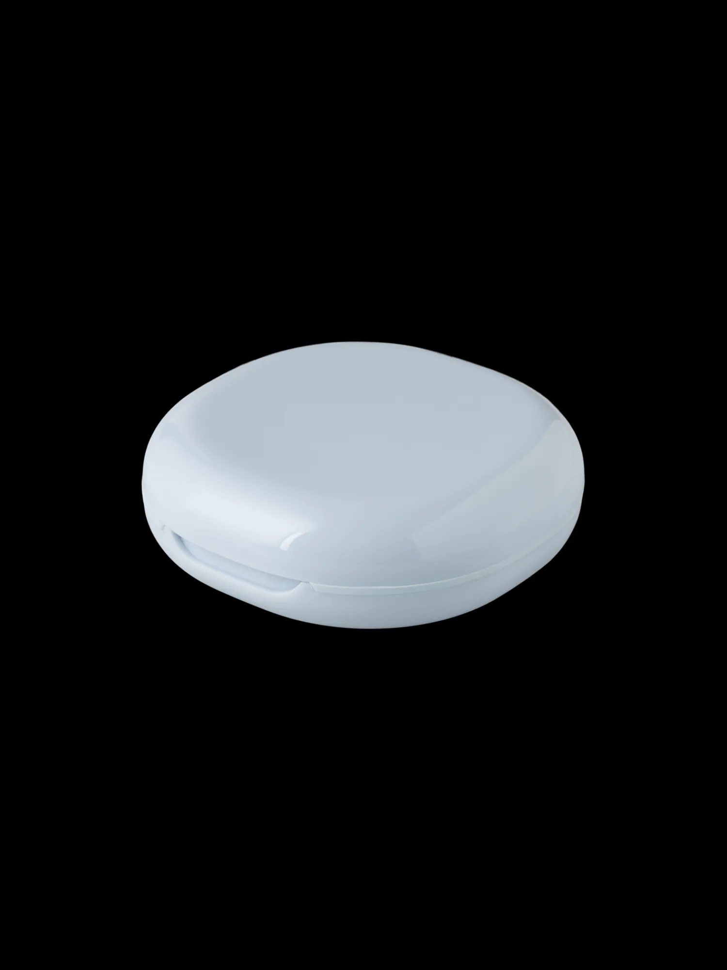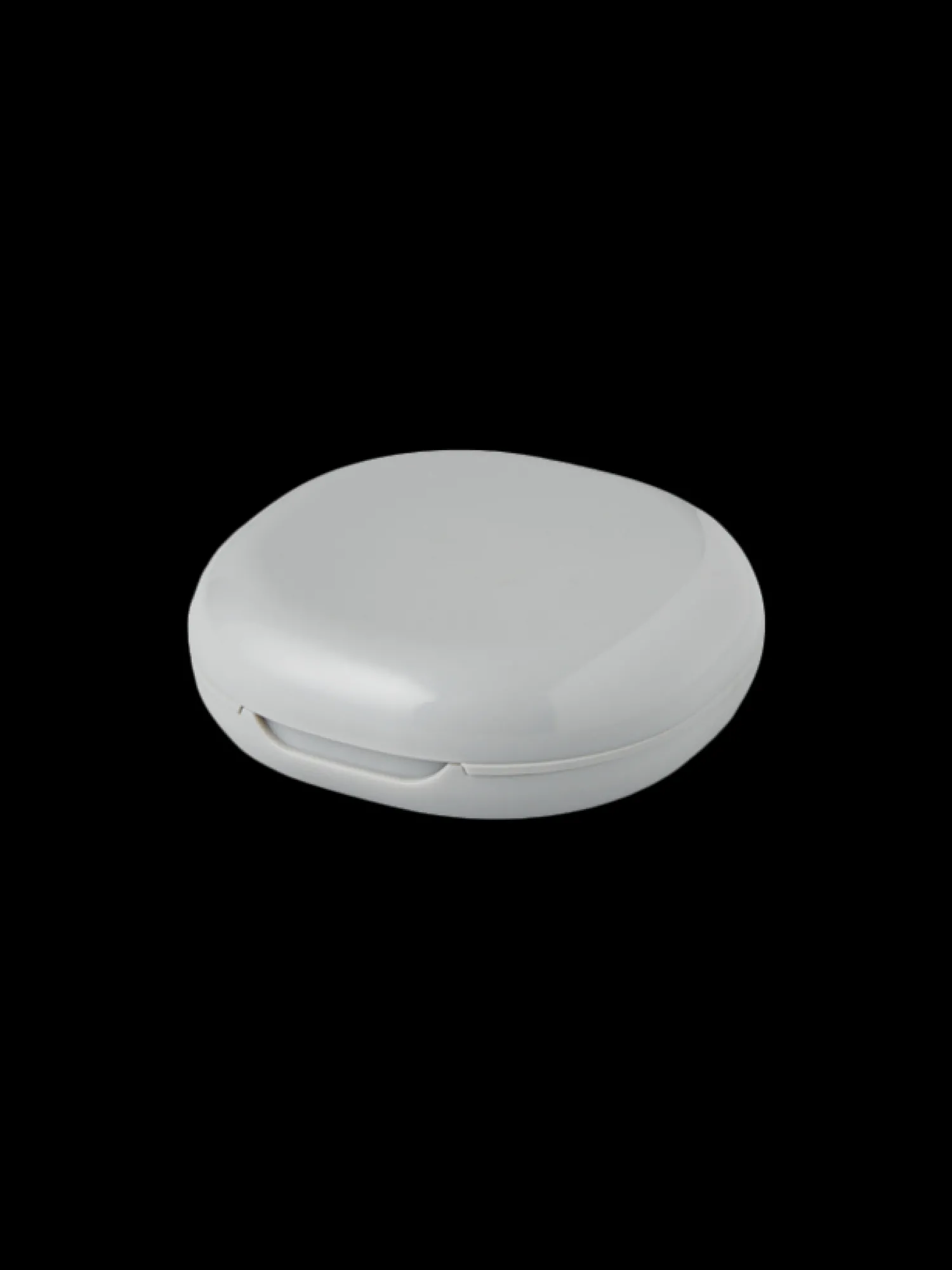 Søstrenes reisepilleeske er laget av polypropylen og silikon, og den er Ø7,5 x 2,5 cm.