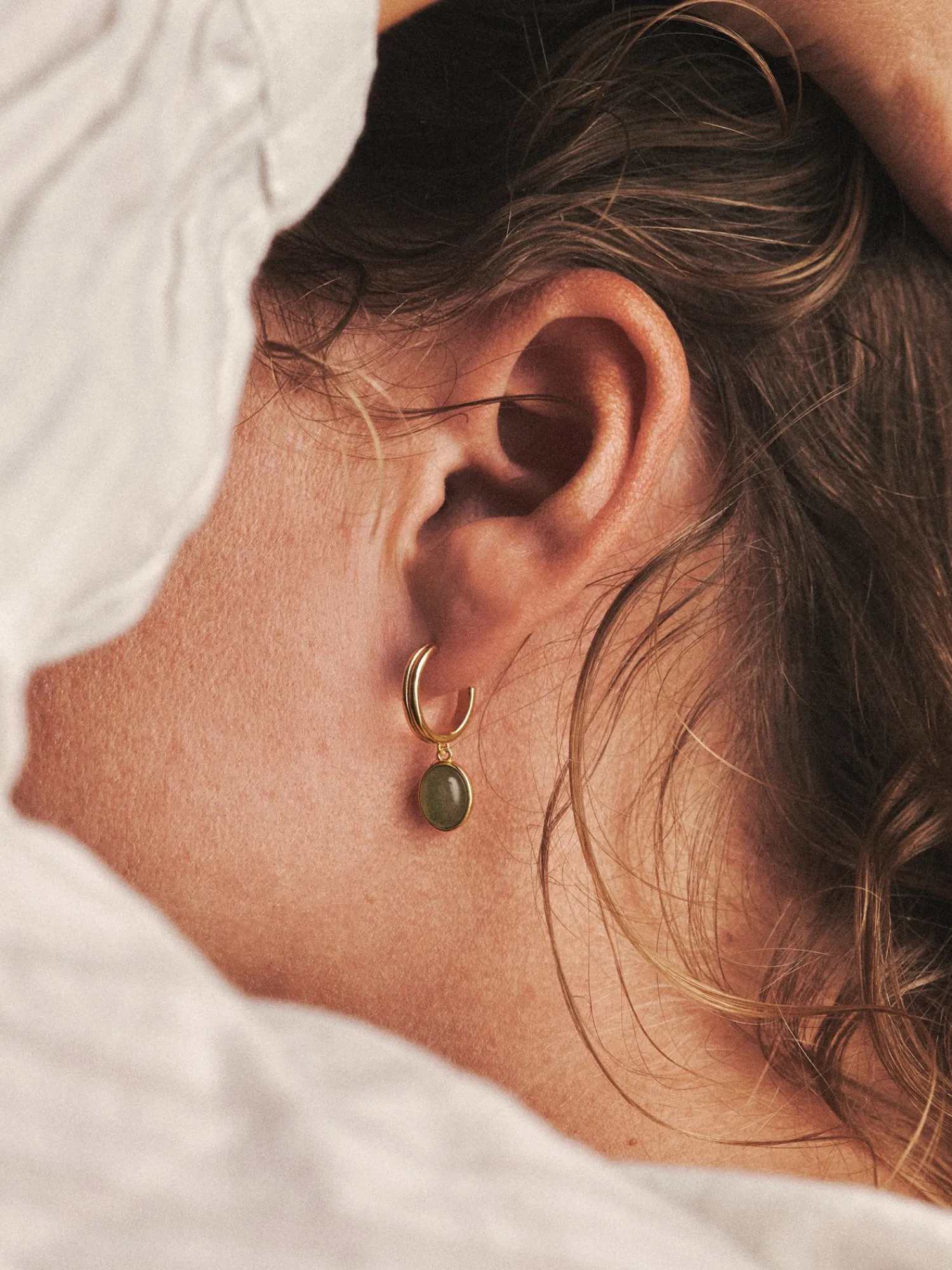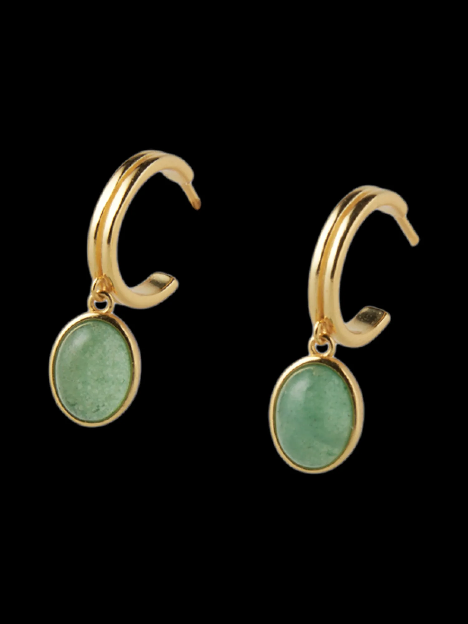 Søstrene minner vennlig om at dette produktet bare er tilgjengelig på nett.Øreringene Silja fra AndCopenhagen er laget av 925 sterlingsølv, de er belagt med 18k gull, og de har en vakker, grønn stein. Øreringene er 0,9 cm i diameter, 2,4 cm lange og 0,2 cm tykke.Anna og Clara minner vennlig om at De bør unngå direkte kontakt med fuktighet og væsker, slik at gullbelegget varer lenger.