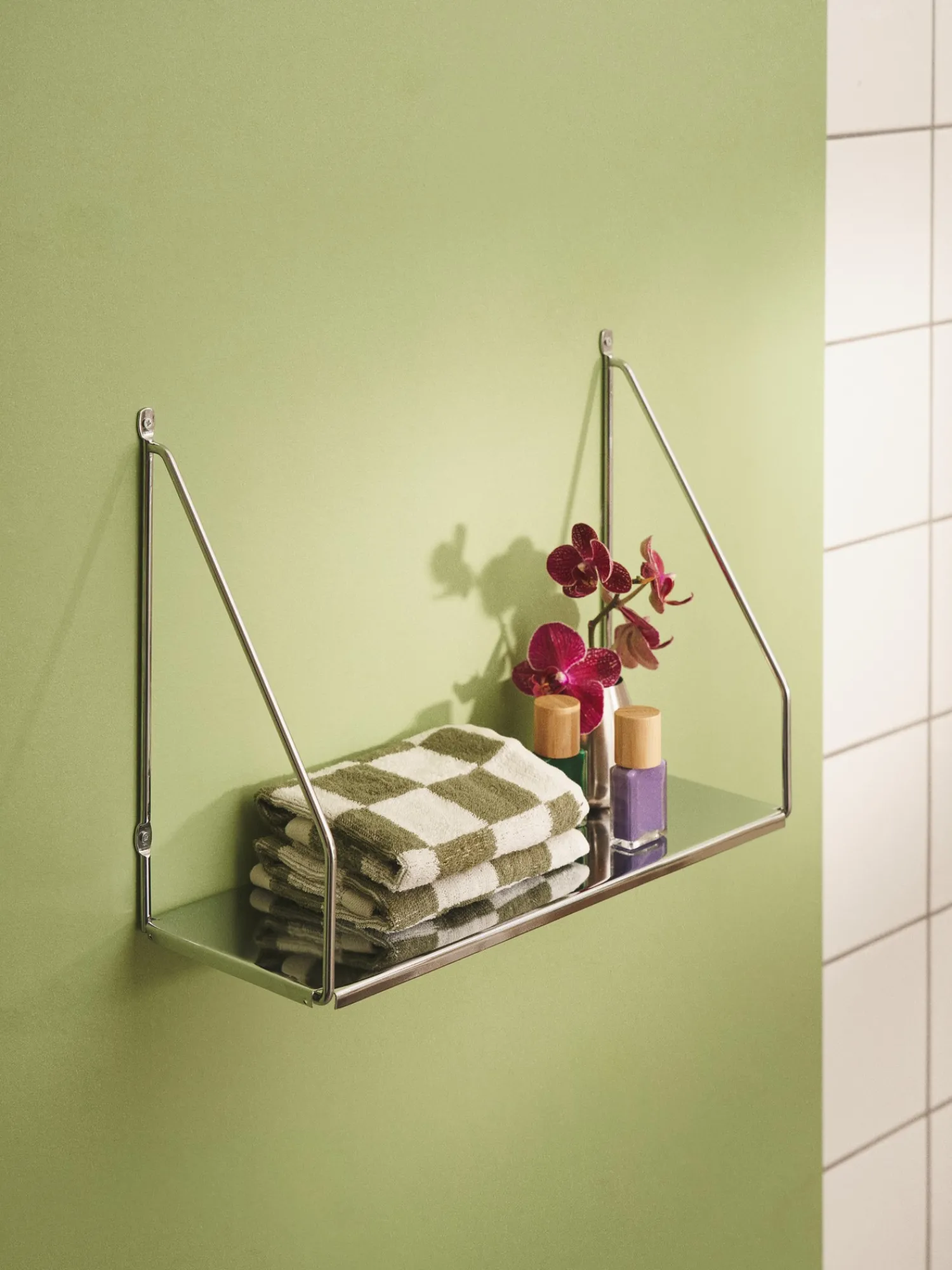 Søstrenes vegghylle er laget av jern, og den er 40 x 15 x 29 cm.Hyllen er den perfekte løsningen til baderommet. Oppbevar håndklær eller andre ting på den. Den kan naturligvis brukes andre steder i boligen også.