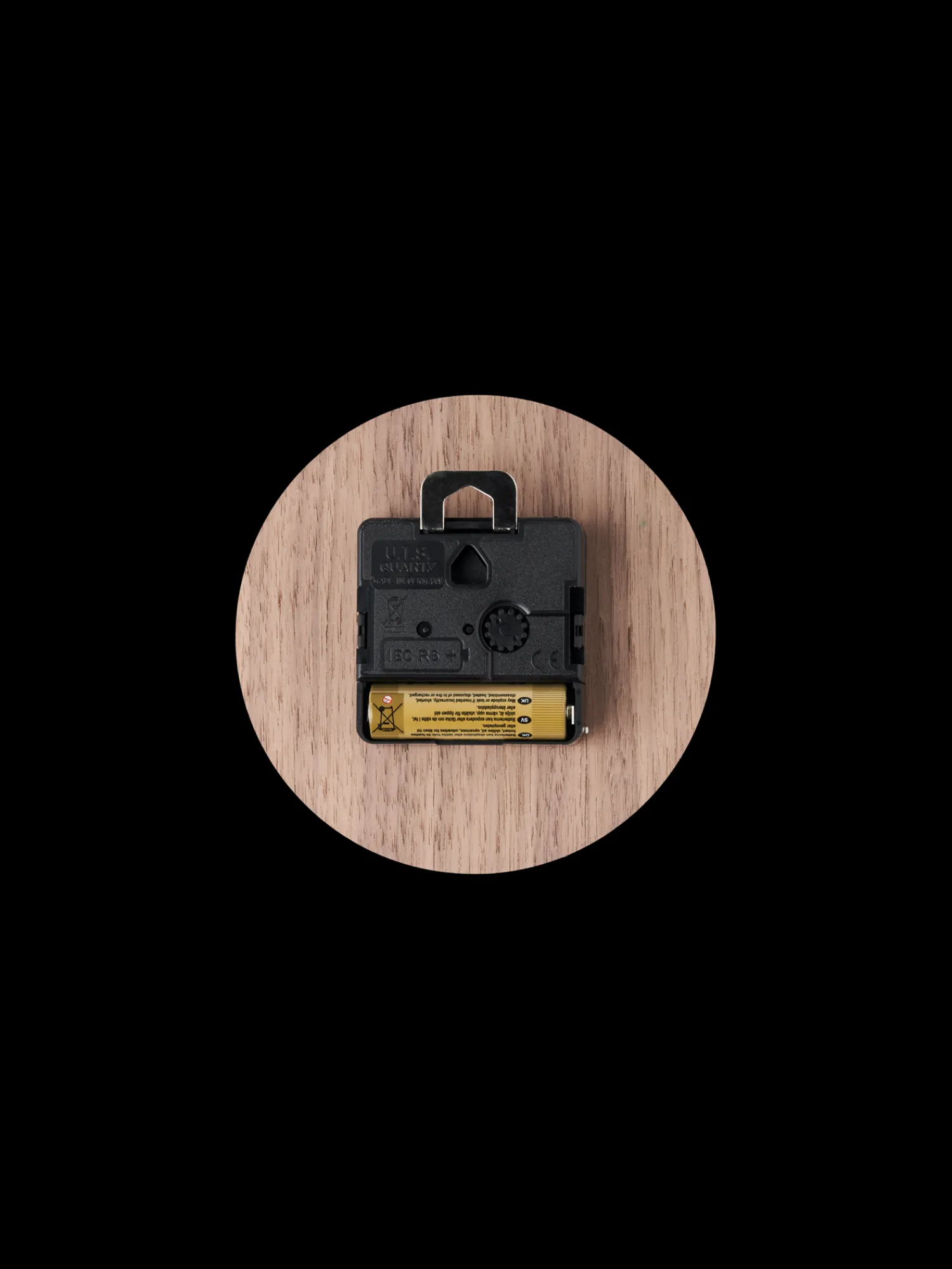 Vegguret fra Hemverk er laget av valnøttfiner, det er 12 cm i diameter, og det har et stillegående urverk fra Junghans. Uret leveres med AA-batteri, en veggplugg og en skrue for montering.Med minimalistisk design og duse farger som er inspirert av den skandinaviske naturen, er vegguret mer enn bare et hjelpemiddel for å se hva klokken er.