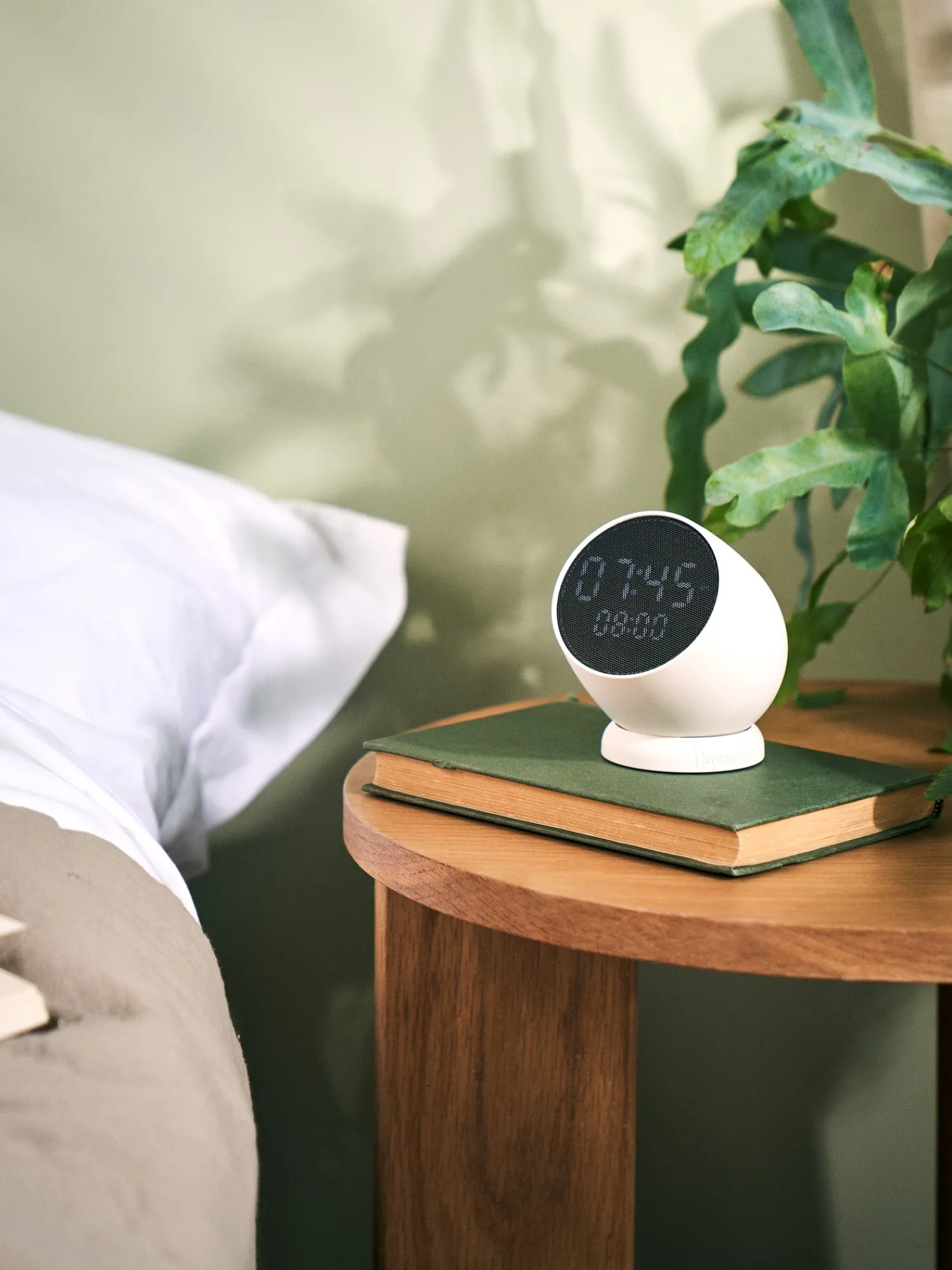 Denne vekkerklokken fra det danske merket Kreafunk har en elegant og intuitiv design, og sokkelen kan roteres, slik at den er enkel å justere. Vekkerklokken er laget av ABS samt metall og silikon.Slå av alarmen om morgenen med et enkelt knappetrykk, eller snu den for å slumre. Vekkerklokken kan også brukes trådløst. Den lades på 1–2 timer og kan brukes i opptil 30 dager.