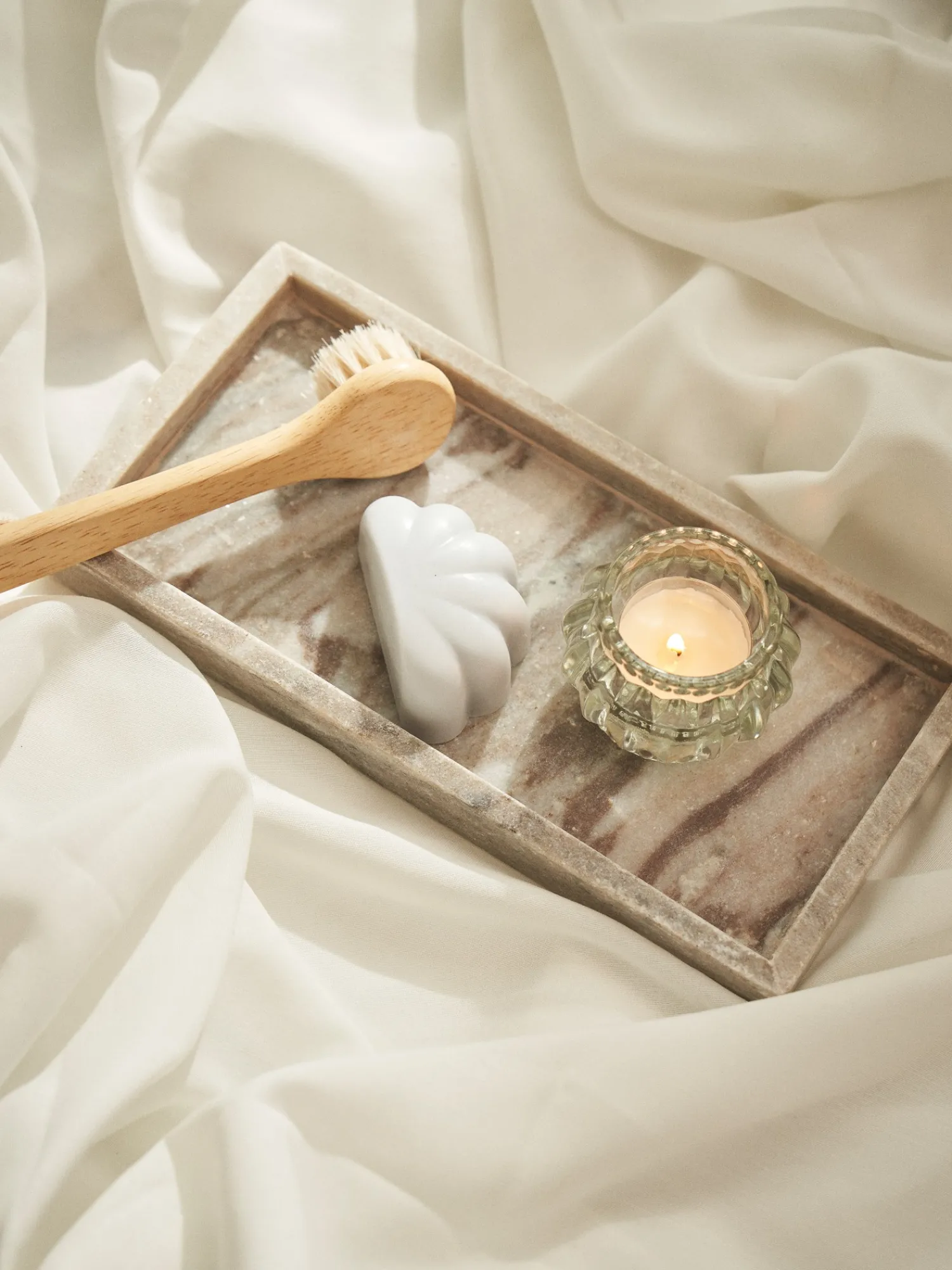 De kan bruke dette dekorative brettet til å vise frem små funn eller som et midtpunkt på salongbordet.Siden marmor er et naturlig materiale, minner søstrene vennlig om at produktets farge og uttrykk kan variere noe.