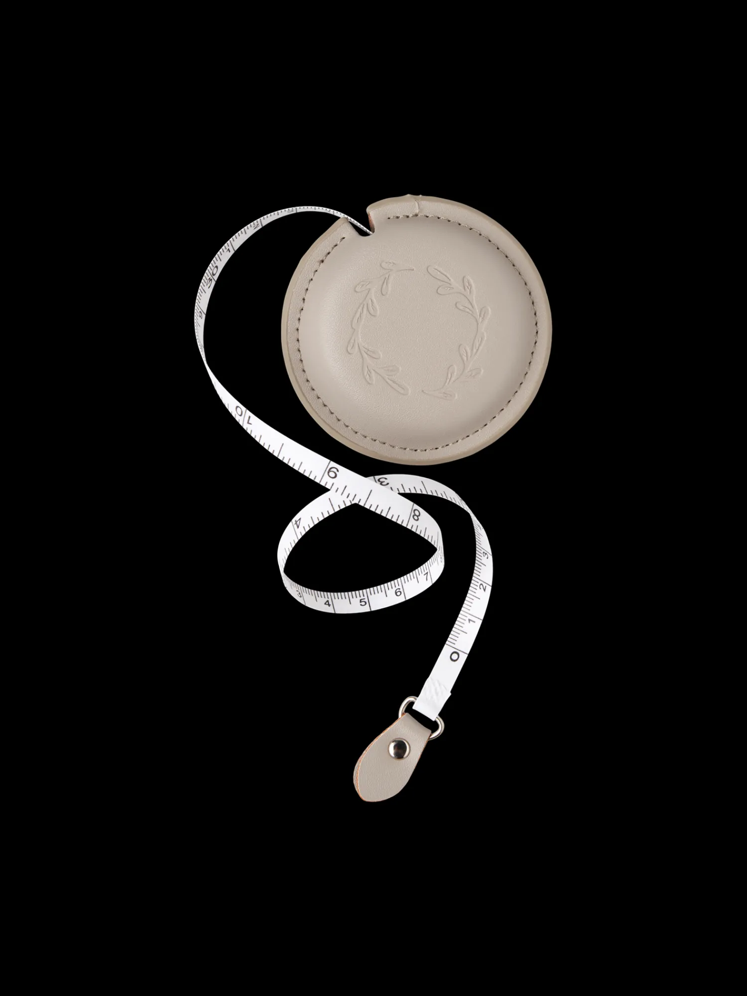 Søstrenes målebånd kan måle opptil 150 cm og leveres i et flott stoffetui.