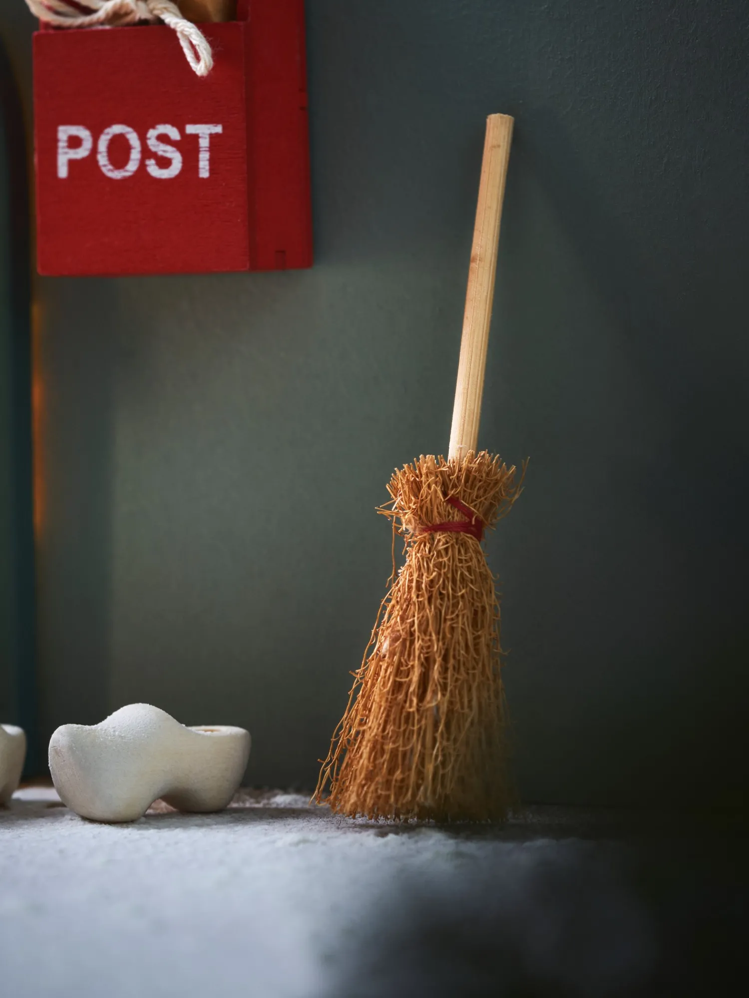 Søstrenes sett med miniatyrgjenstander består av en kost som er 10 cm høy, en veske som er 5 cm høy, en matte som er 3,8 x 5,8 cm, en lykt som er 3,6 cm høy, og en krans som er Ø2,8 cm. Bruk søstrenes miniatyrgjenstander til hobbyprosjektene Deres, som tilbehør i et dukkehus eller som bedårende detaljer på julealven eller alvedøren. Hvem vet – kanskje kommer det en liten gjest på besøk?