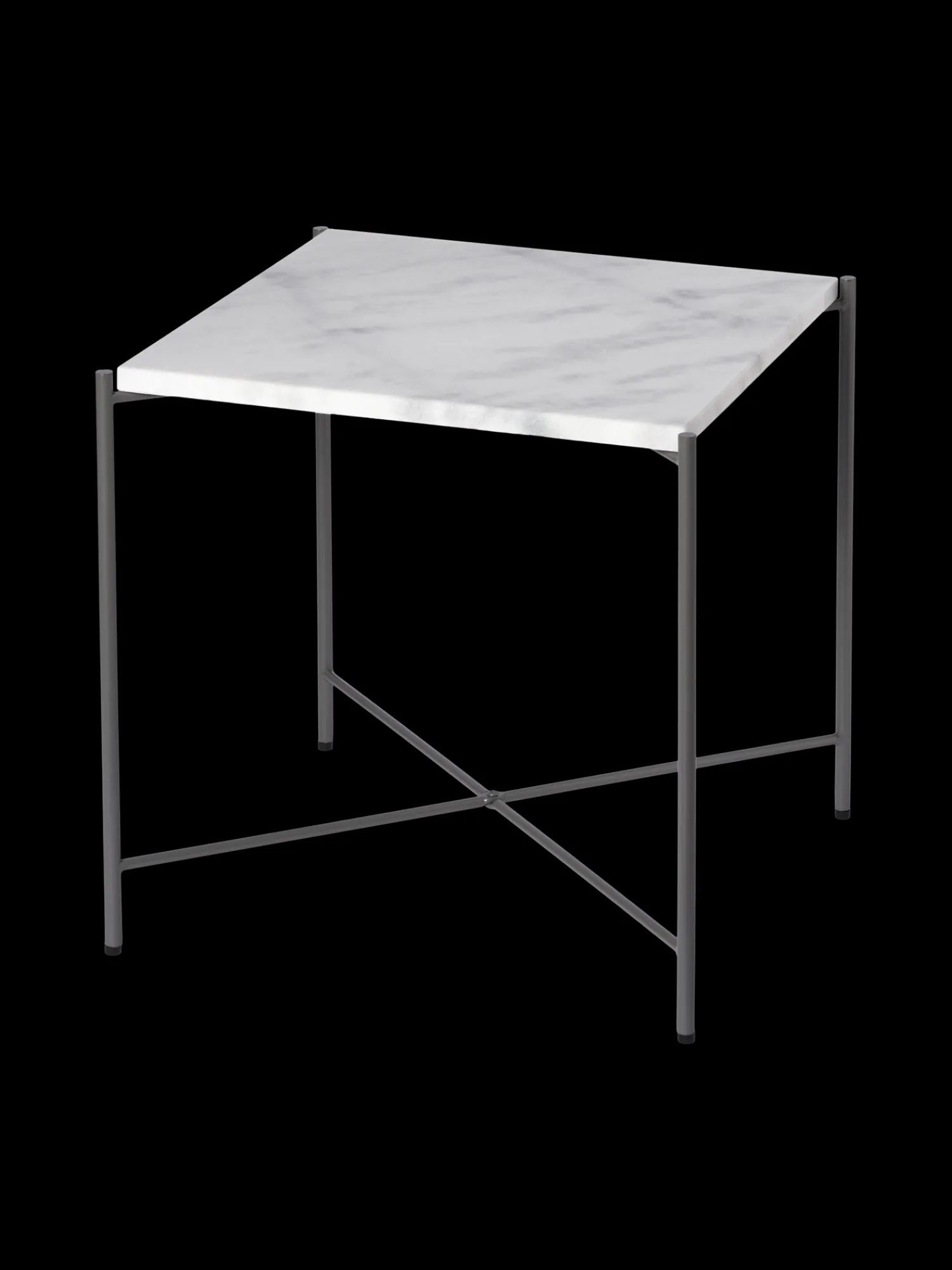 Søstrenes sidebord er laget av marmor, og det har bein av jern.Siden marmor er et naturlig materiale, minner søstrene vennlig om at produktets farge og uttrykk kan variere noe.