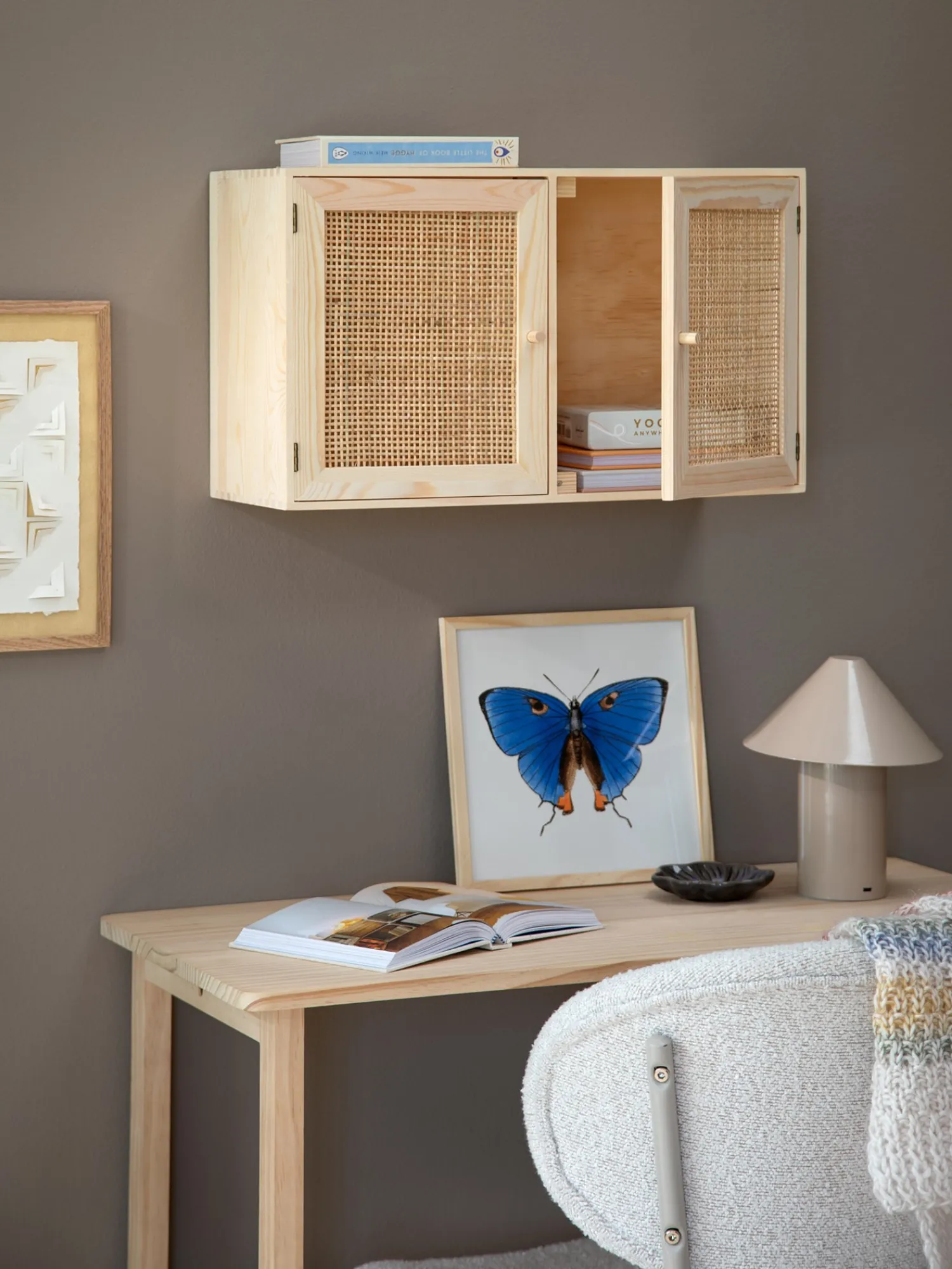 Søstrenes skap er laget av FSC®-sertifisert furu, kryssfiner og rotting.