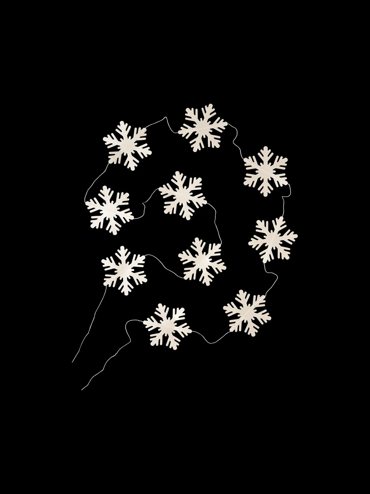 Søstrenes populære snøkrystallgirlander er tilbake. Årets utgave er laget av FSC®-sertifisert papir med perlemoreffekt, og den er 150 cm lang.
