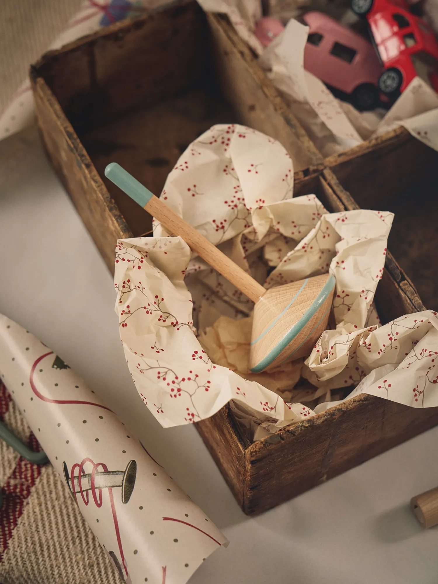 Søstrenes snurrebass av tre er laget av FSC®-sertifisert bøk.