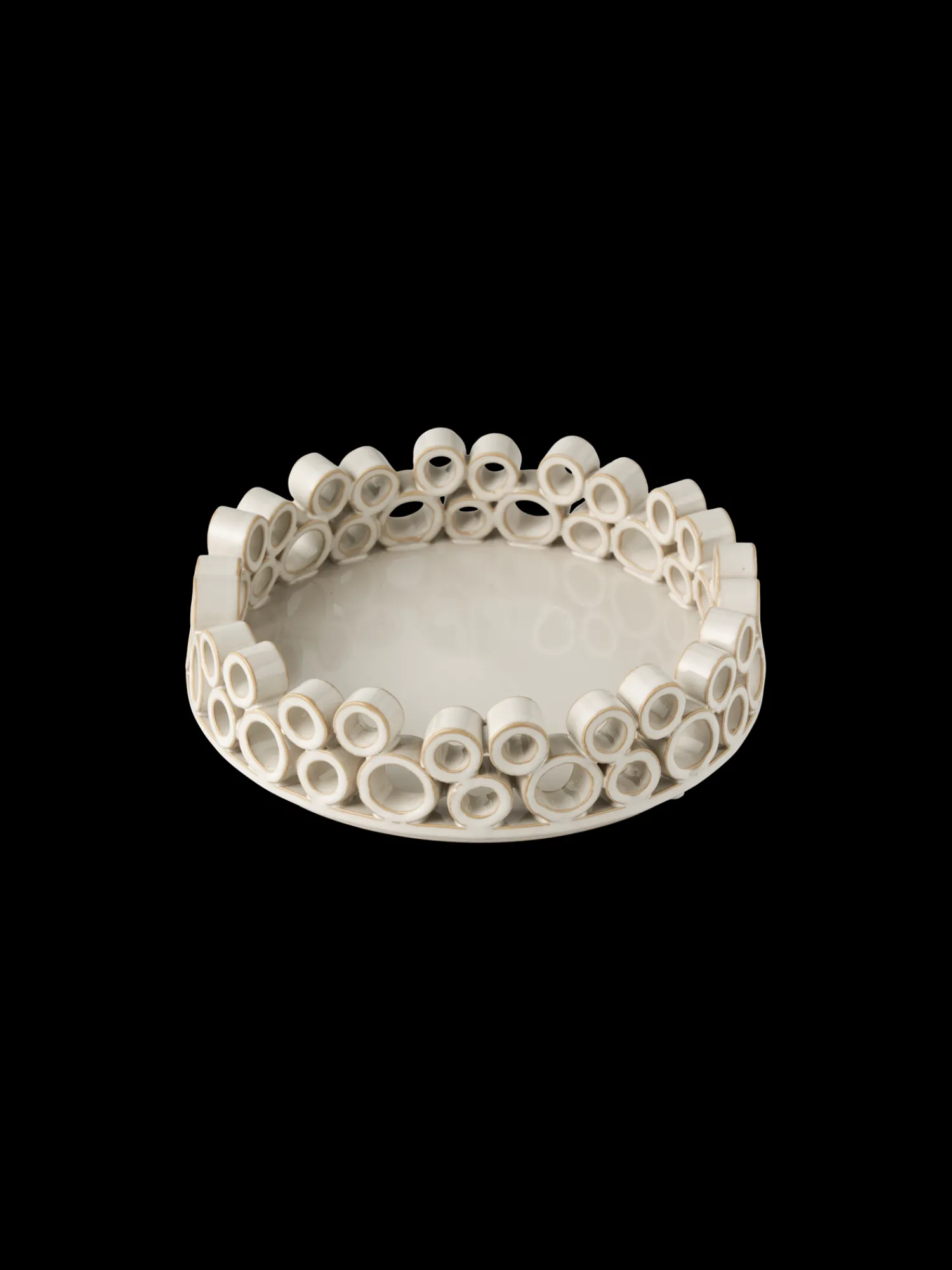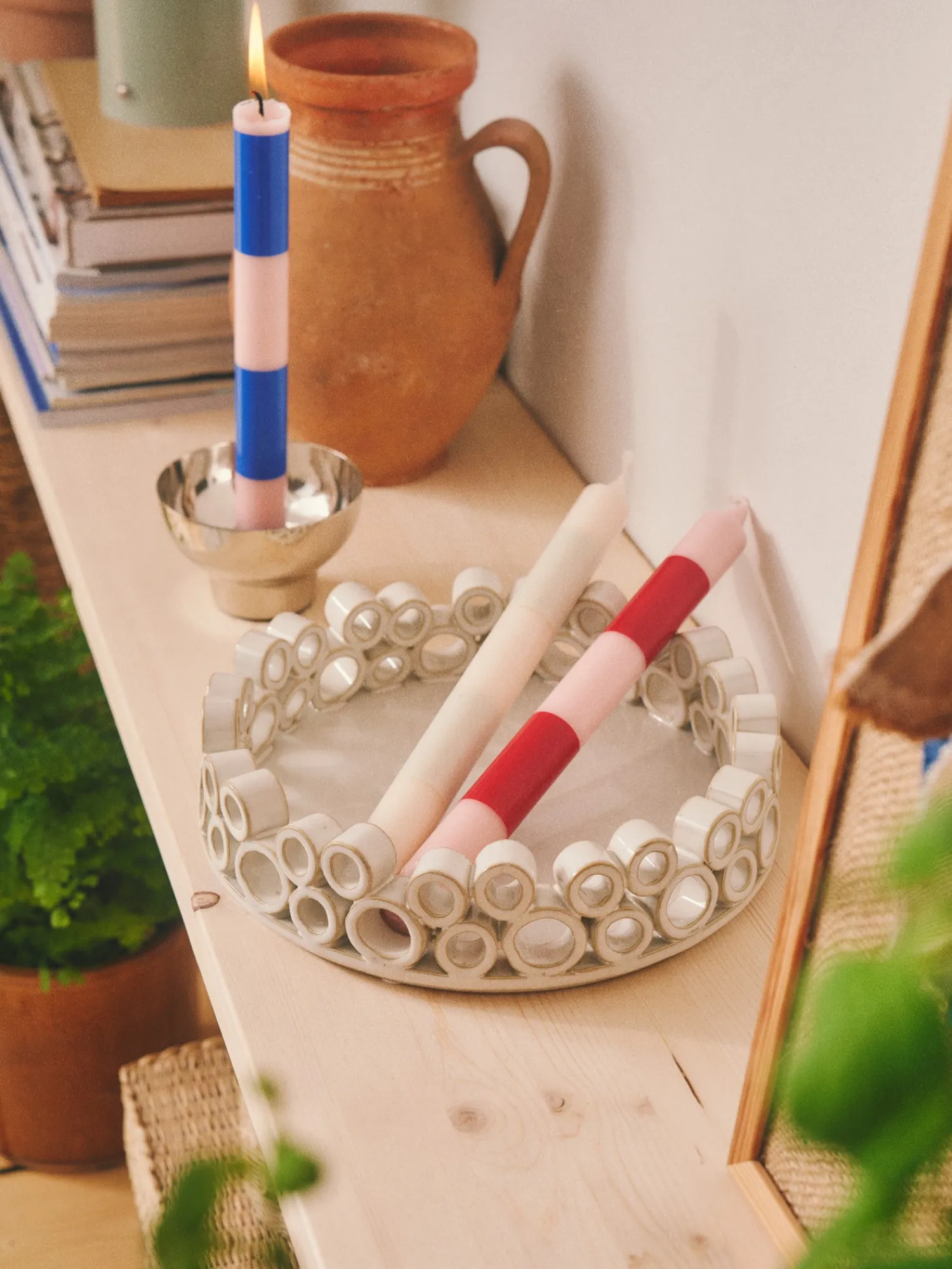 Søstrenes brett er et dekorativt tilskudd til ethvert interiør, og det er også et nydelig midtpunkt.Siden dette produktet er laget av steintøy, legger søstrene vennlig til at uttrykket kan variere noe.