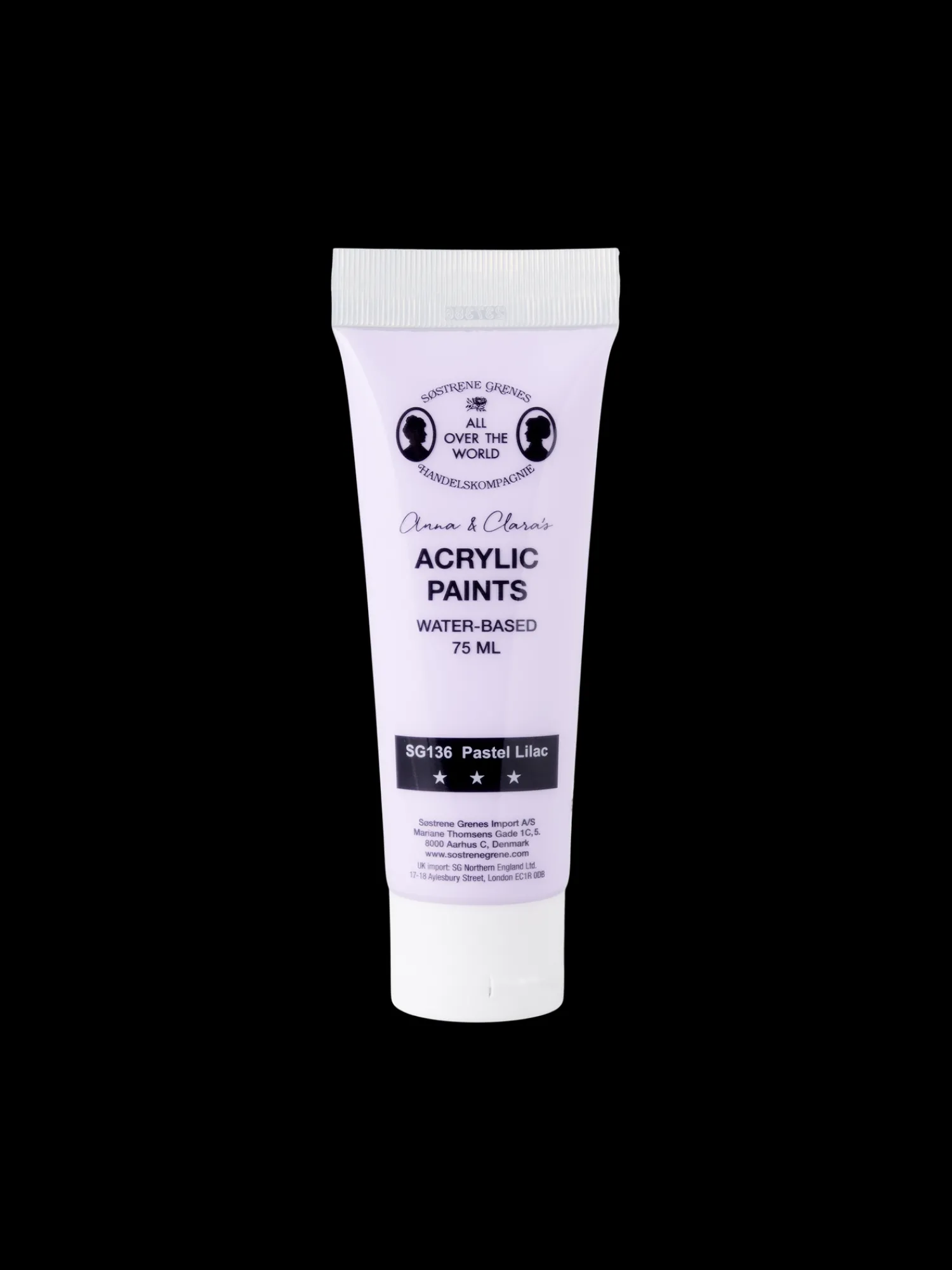 Søstrenes akrylmaling leveres i tuber på 75 ml.