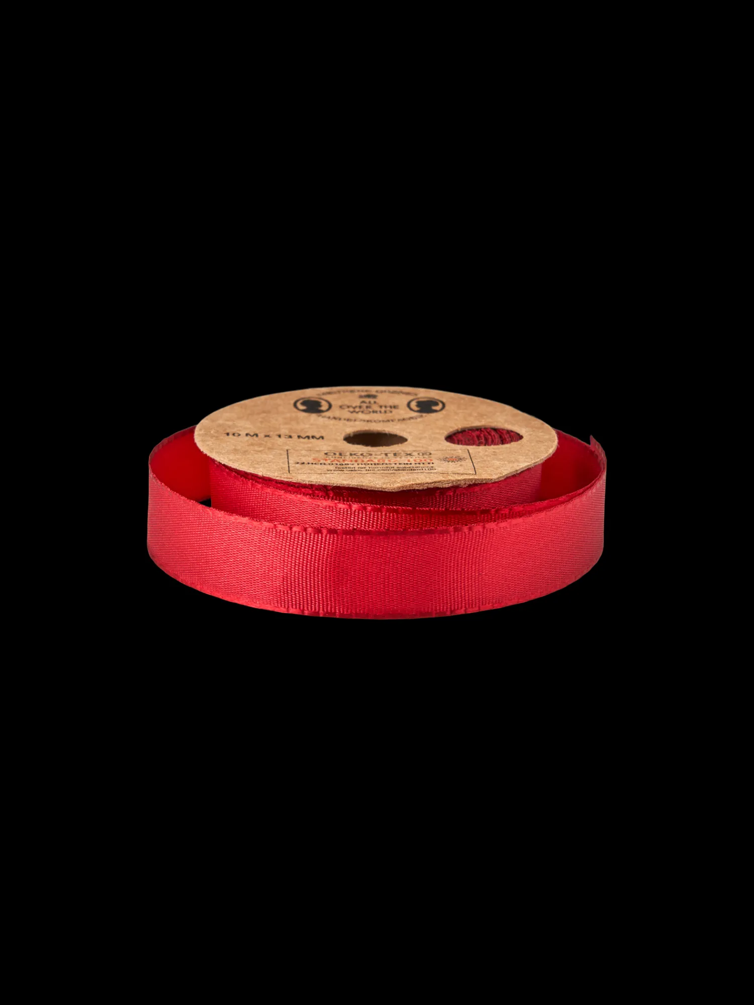 Søstrenes gavebånd er laget av STANDARD 100 by OEKO-TEX®-sertifisert polyester. Det er 13 mm x 10 m.«Gavebånd er kronen på verket for gaveinnpakningen», sier Clara.
