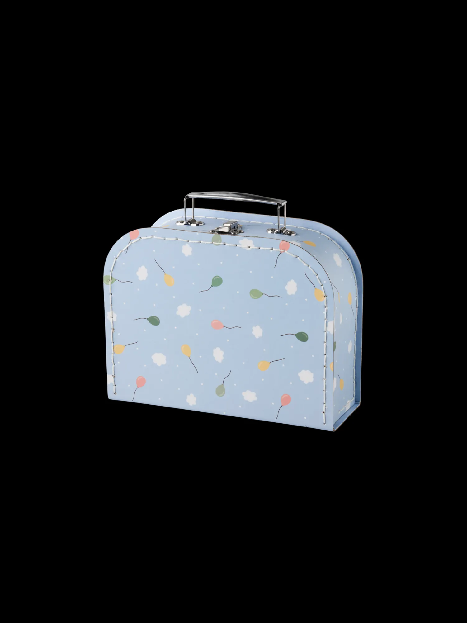Søstrenes barnekoffert er laget av FSC®-sertifisert papir, og den er 23,5 x 18,5 x 8,5 cm.Når søstrenes nevø kommer på overnattingsbesøk til Anna og Clara, har han alltid med seg favorittlekene sine. For å gjøre turen til søstrene enklere har Anna gitt ham denne bedårende kofferten. «Den passer også ekstra godt på lekene mine», sier nevøen med et smil.