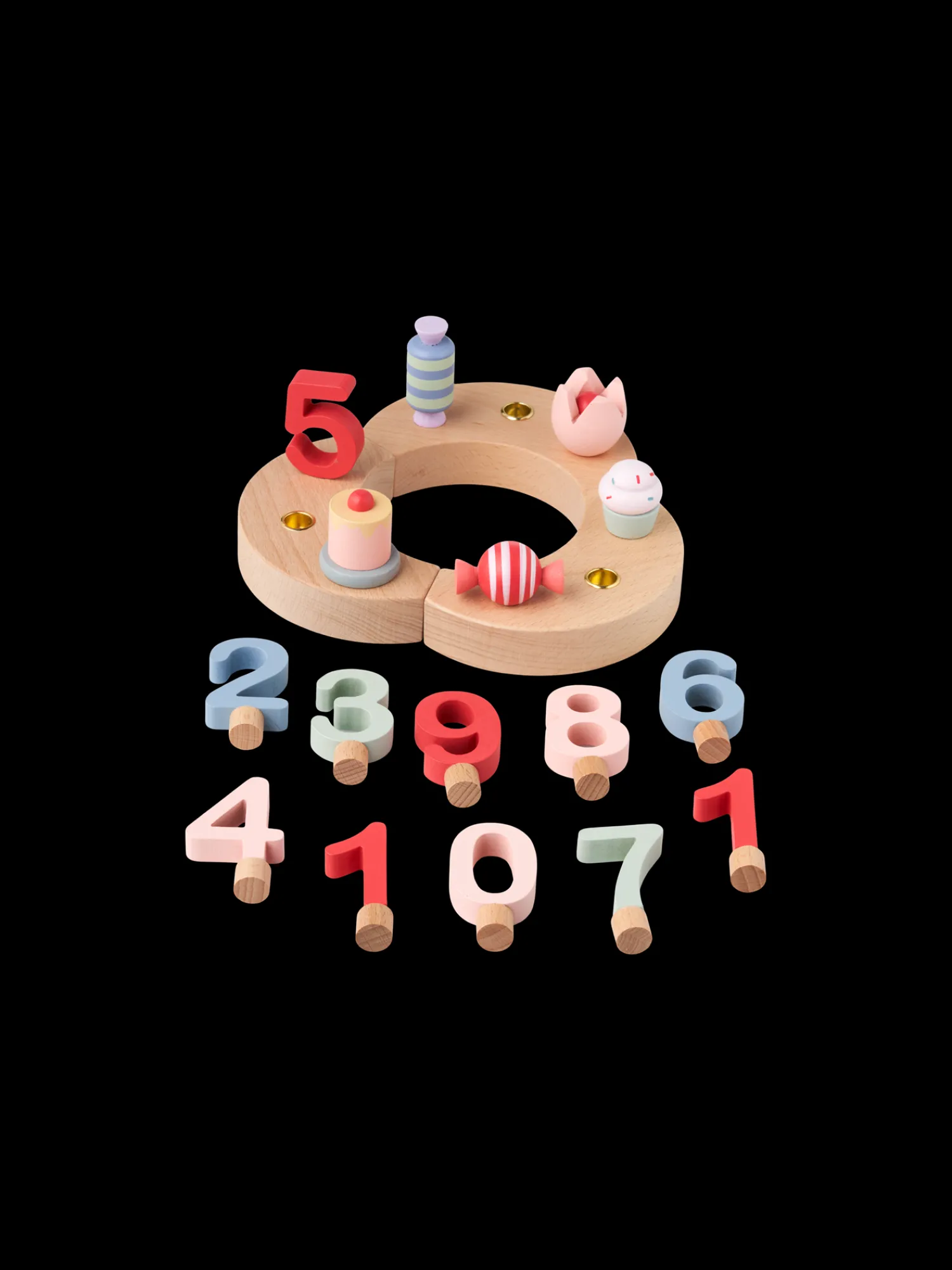 Søstrenes dekorative fødselsdagslysestake er laget av 100 % FSC®-sertifisert bøk og MDF. Den har elleve tall, fem figurer og plass til tre lys som er 1,2 cm i diameter. Søstrene legger vennlig til at lysene ikke medfølger, men kan kjøpes separat.