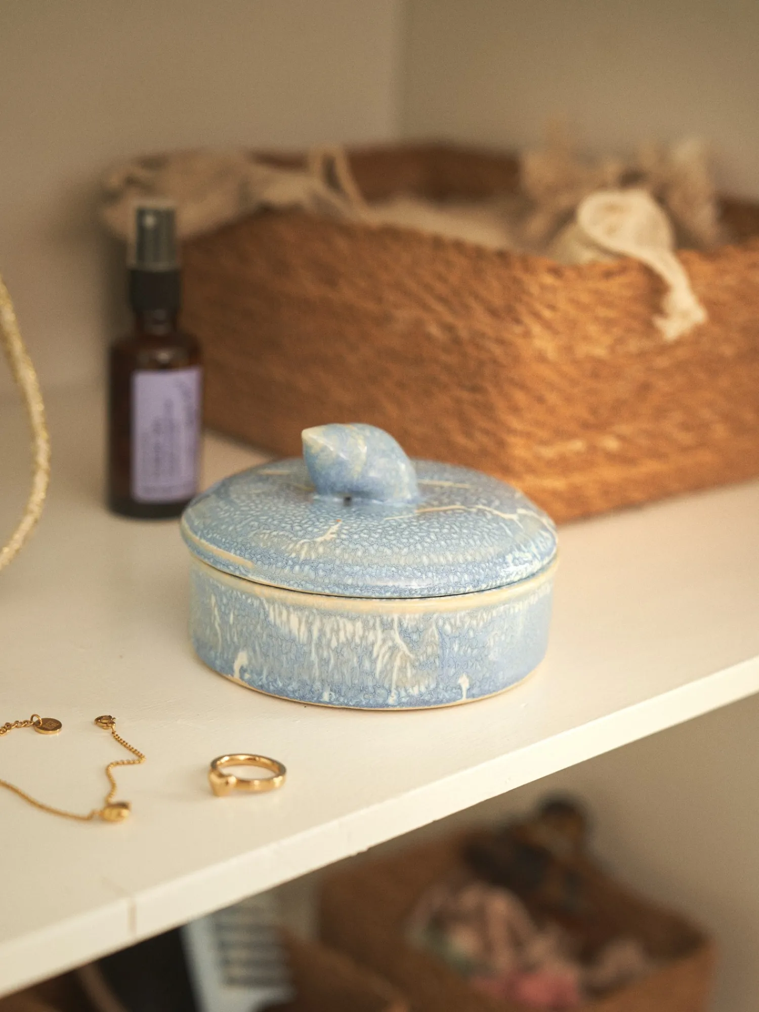 Søstrenes krukke er en nydelig bolig for små pyntegjenstander eller bare som en fin dekorasjon.Søstrene legger vennlig til at siden dette produktet har glasur, kan uttrykket variere noe.