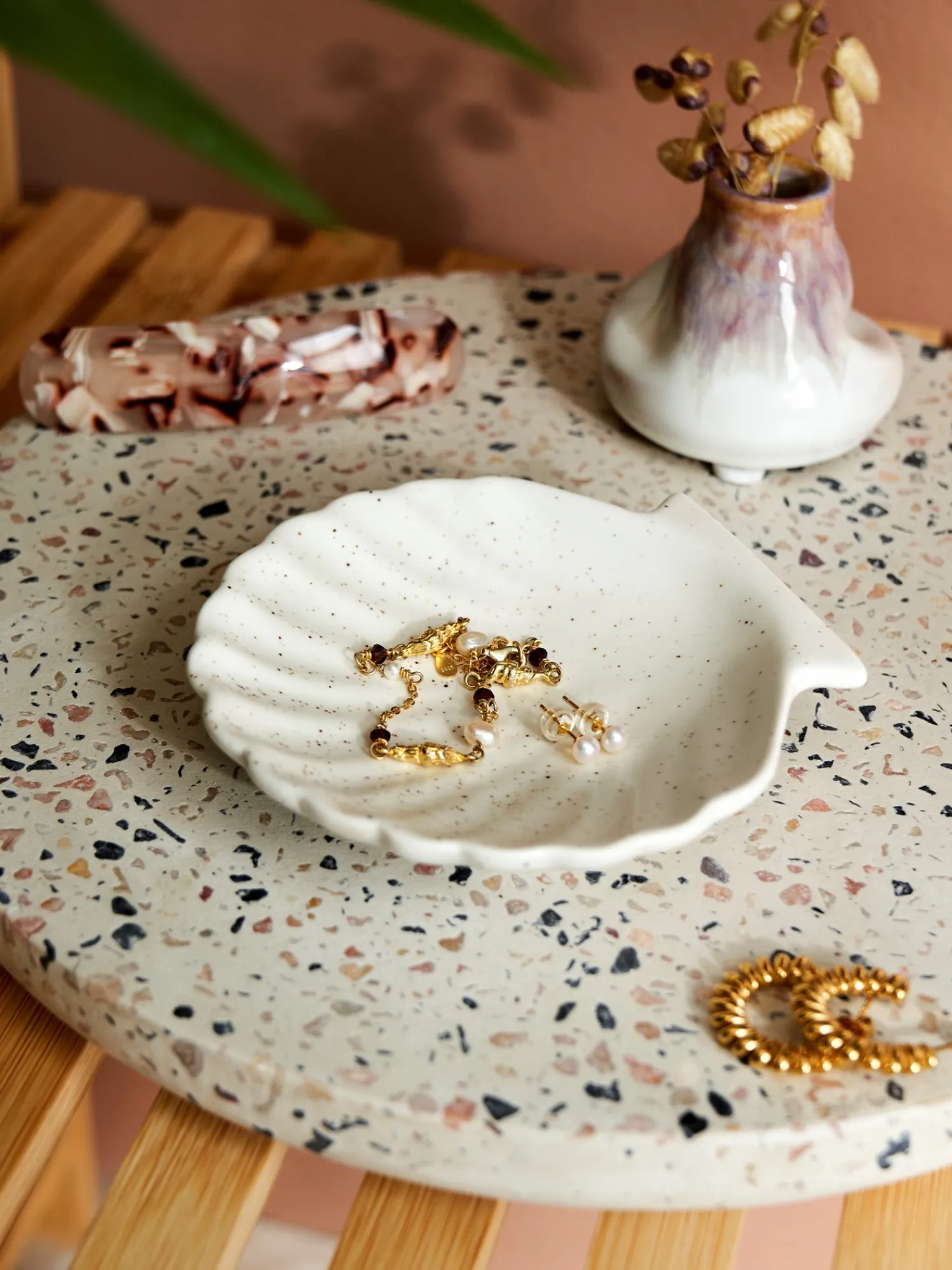 Denne dekorative skålen av steintøy er 10 x 9,5 x 2,5 cm, og den er perfekt til små skatter og nips.Søstrene legger vennlig til at siden dette er et steintøyprodukt, kan uttrykket variere noe.