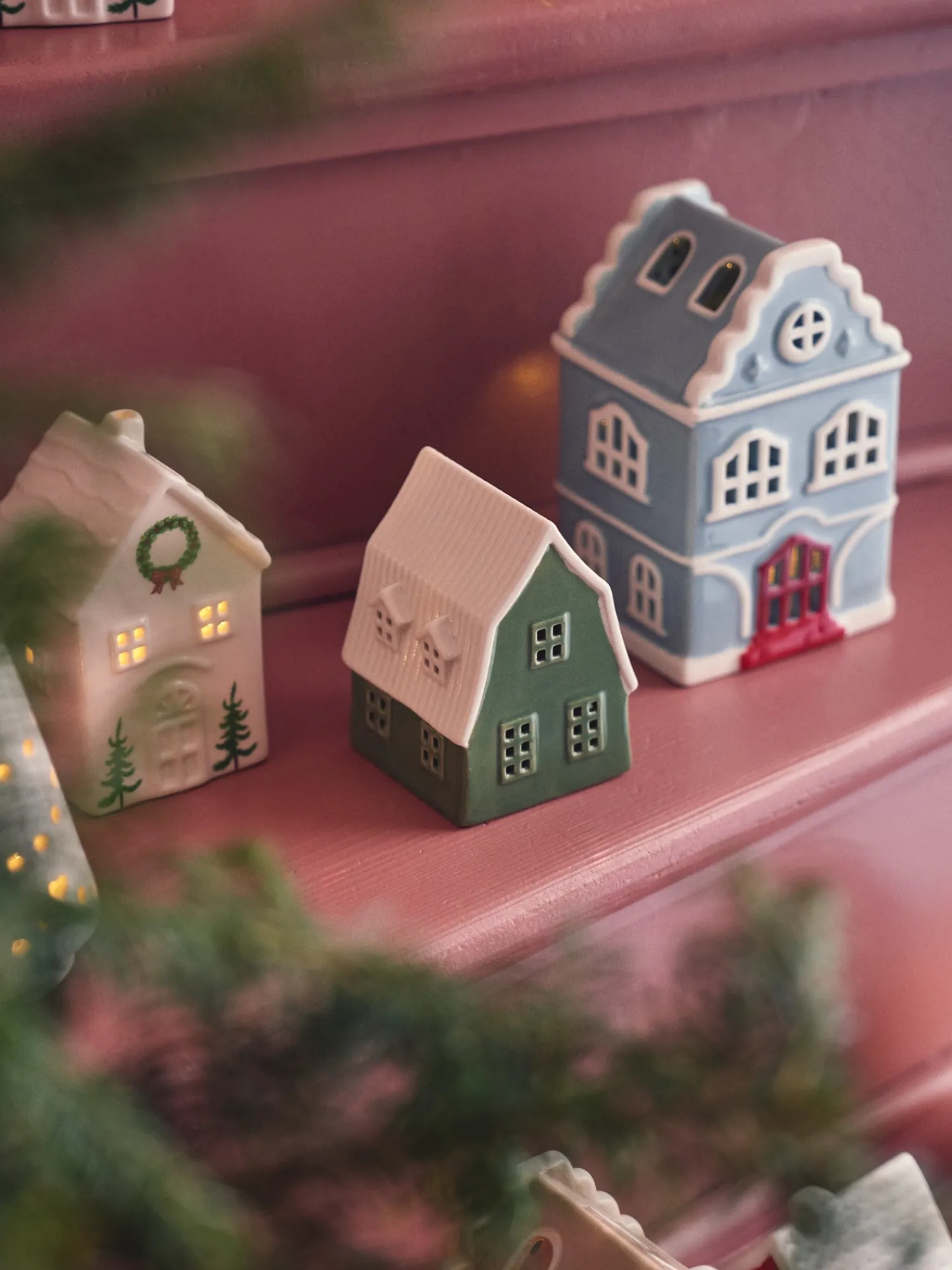 Søstrenes porselenshus med LED leveres med batterier. De kan sette opp de forskjellige LED-husene for å lage sjarmerende små julelandsbyer, og De kan også plassere de dekorative trærne for å skape enda mer julestemning.Søstrene legger vennlig til at siden dette er et produkt med glasur, kan fargen og uttrykket variere noe.