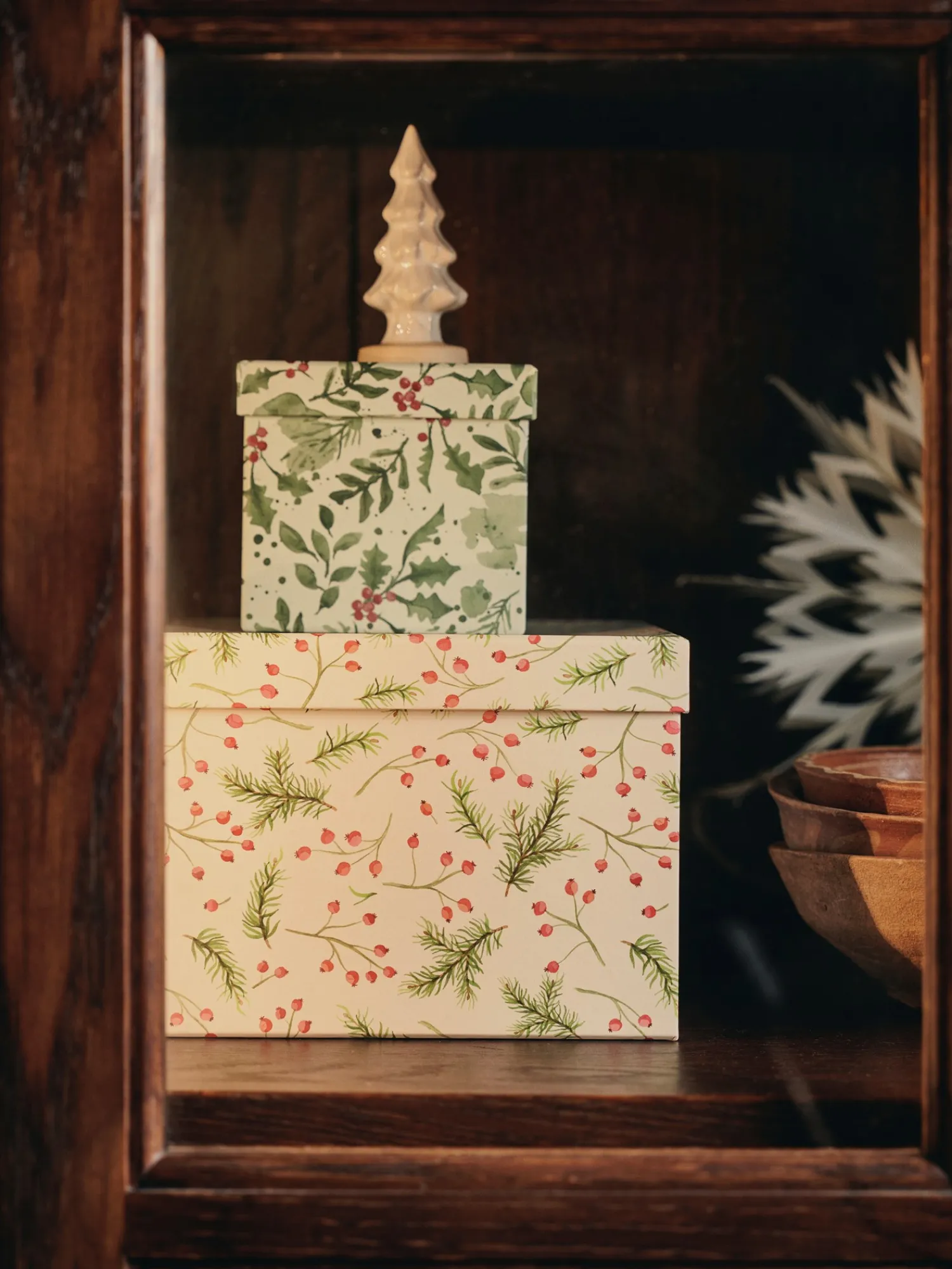 Søstrenes eske er laget av FSC®-sertifisert papir. Den er perfekt som en praktisk oppbevaringsløsning i boligen, eller som gjenbrukbar gaveinnpakning for bursdags- og julegaver. Med sin vakre design er den også et perfekt tilskudd til julepynten, og den kan brukes til å oppbevare julepynt når julen er over.