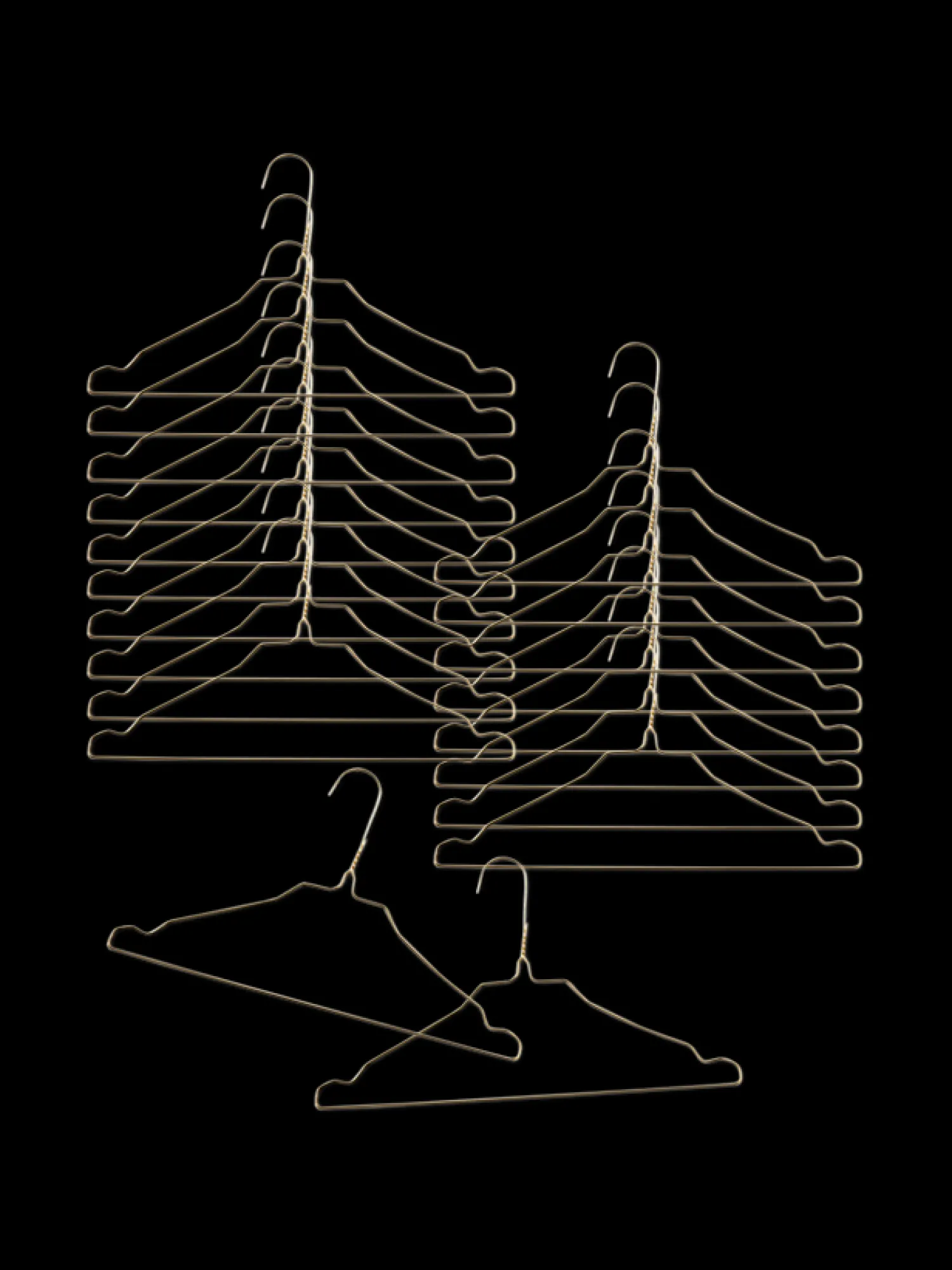 Søstrenes pakke med kleshengere inneholder 20 stk. og måler 40,5 cm.Clara er spesielt glad i å holde orden, og garderoben hennes er ikke noe unntak. Her henger nydelige kjoler og skjorter snorrett på tynne metallhengere. «Disse sterke metallhengerne er så tynne at det kan være ekstra mye klær i skapet», sier Clara med et smil. «Og med denne pakken vil De også enkelt og raskt kunne holde orden i klærne Deres.»