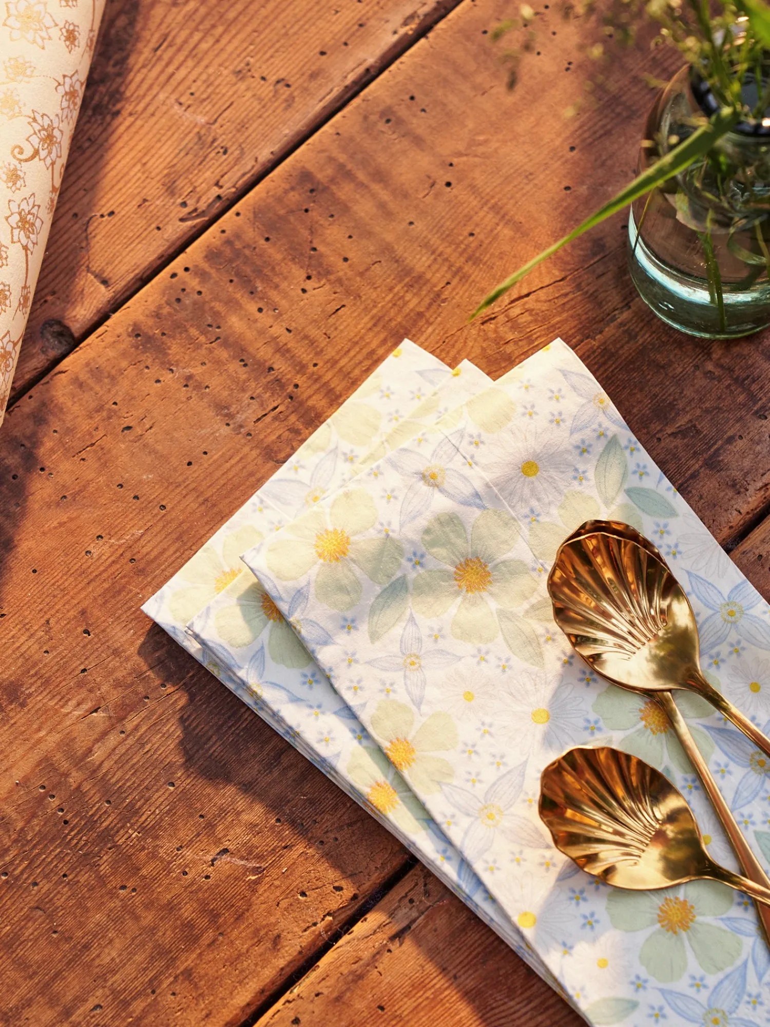 Søstrenes servietter er laget av FSC®-sertifisert papir, og de er svanemerket. De er produsert i EU. Når de brettes ut, er de 40 x 40 cm, og pakken inneholder 16 stykker. De kan bruke papirservietter til å pynte bordet, og De kan også bruke dem i hobbyprosjekter, for eksempel til decoupage eller pappmasjé. Hvis De trenger inspirasjon til hobbyprosjekter eller interiørdekorasjon, finner De et stort utvalg av kreative idéer på søstrenes inspirasjonsside.