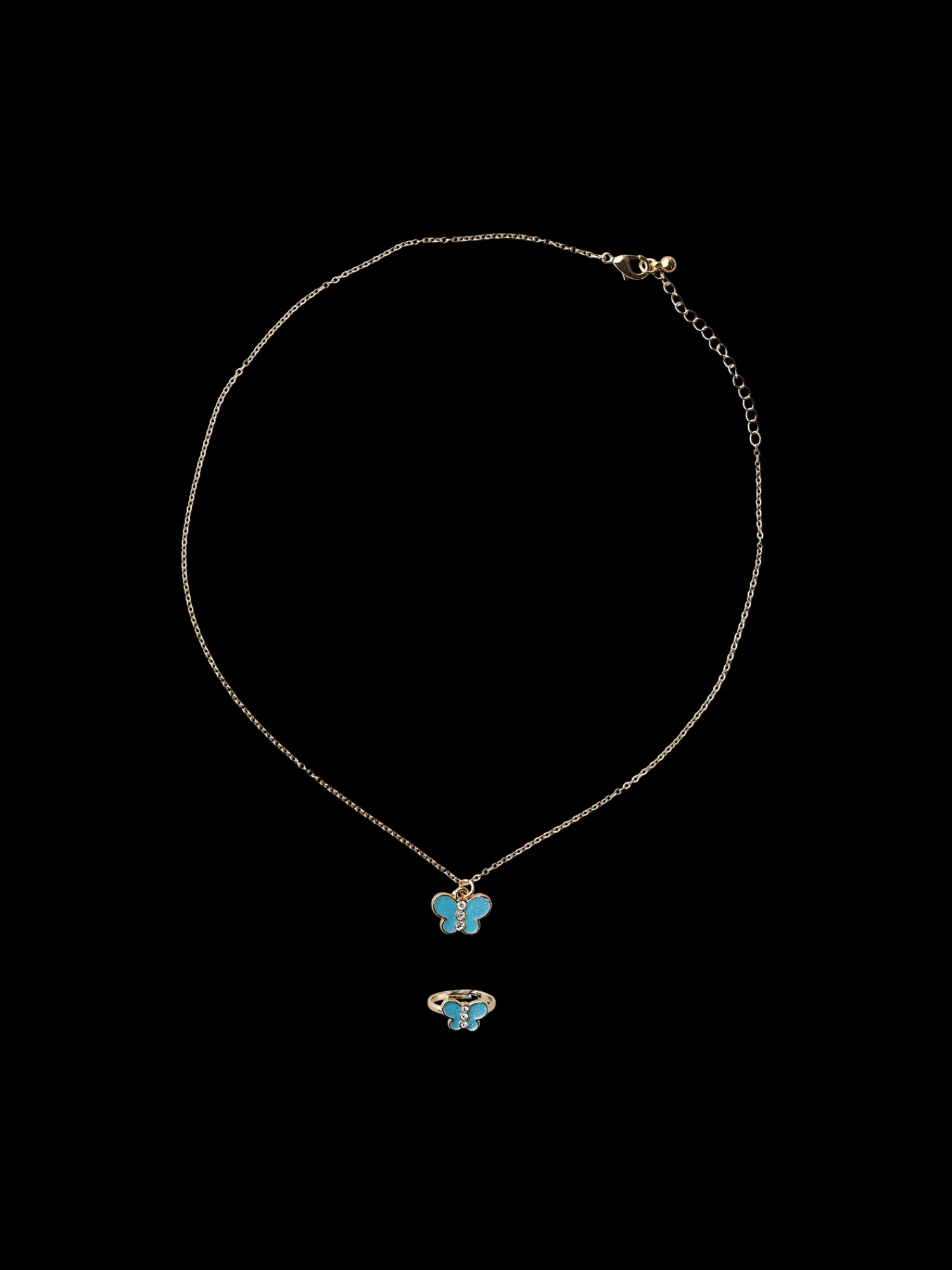 Søstrenes smykkesett for barn består av et nydelig halskjede og en ring.