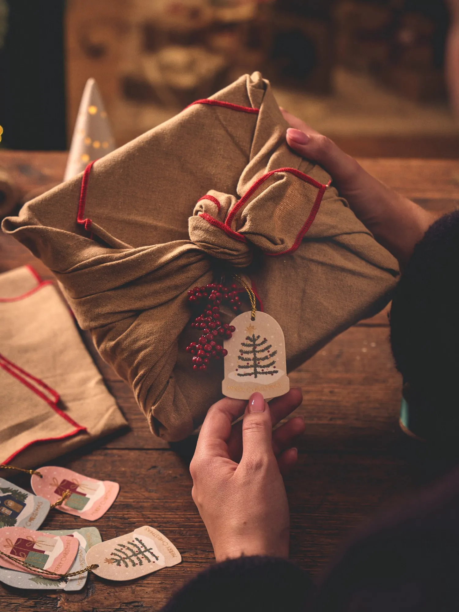 Søstrenes gaveinnpakning av bomull er STANDARD 100 by OEKO-TEX®-sertifisert, og dette er et flott og gjenbrukbart alternativ til gavepapir.