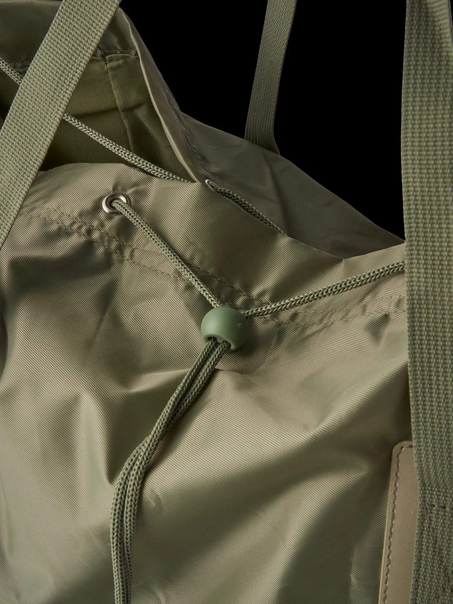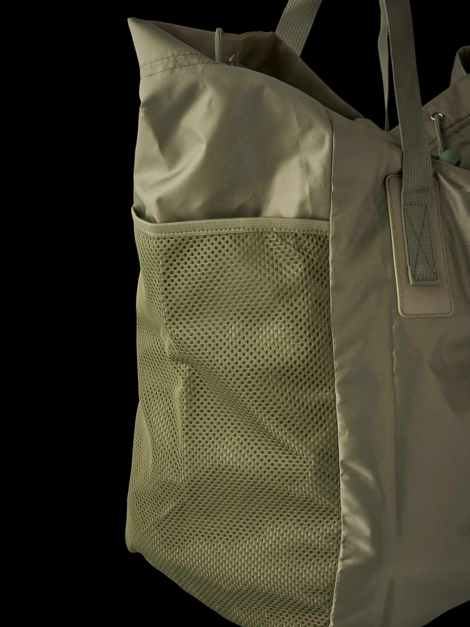 Søstrenes store tøyveske er STANDARD 100 by OEKO-TEX®-sertifisert, og den er perfekt til helgeturer. Den kan lukkes med snor øverst, og den har sidelomme av mesh samt en innerlomme med glidelås.