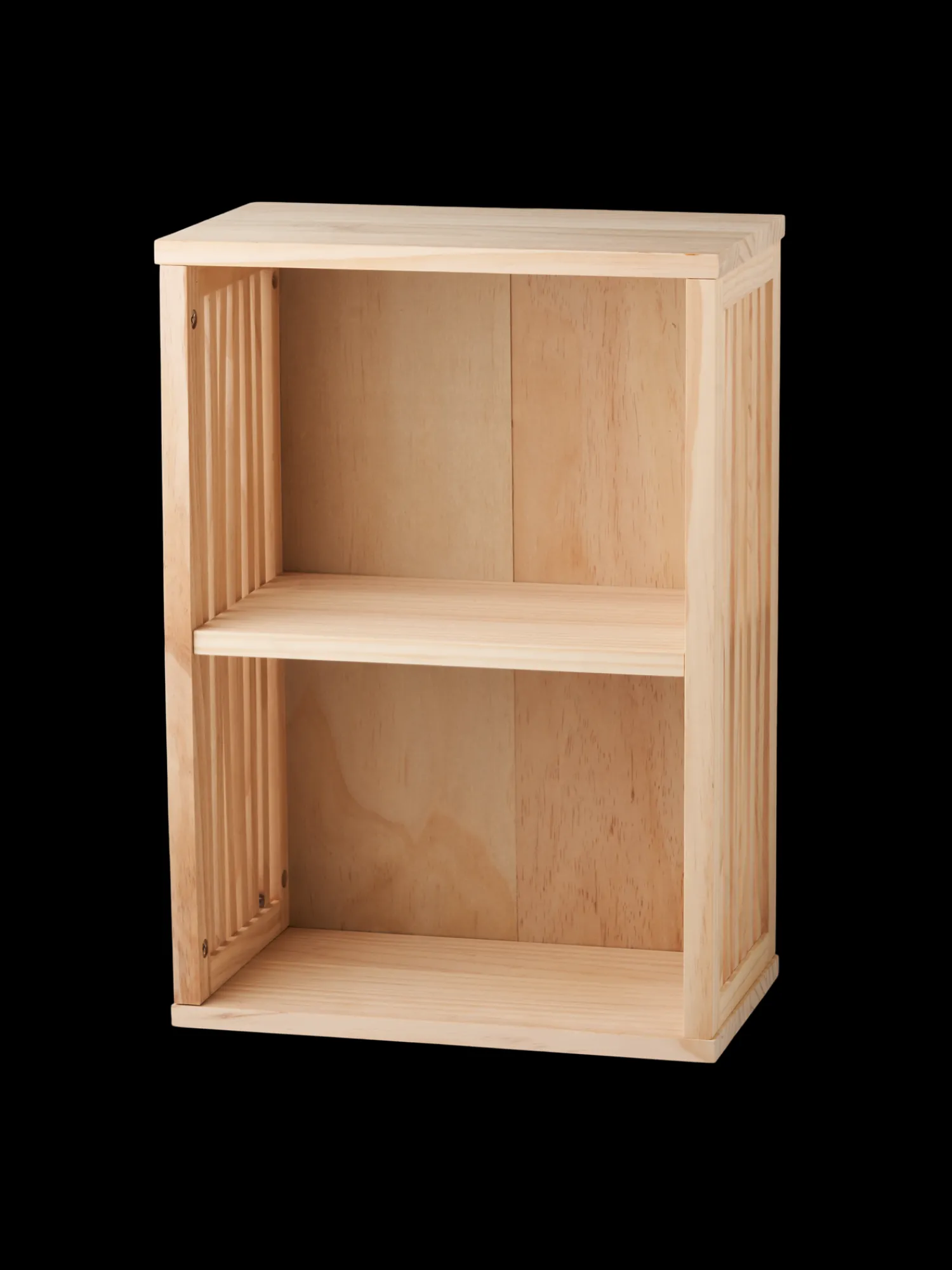 Søstrenes hylle er laget av FSC®-sertifisert furu, og den er 35 x 20 x 50 cm.«Den passer helt perfekt der borte», utbryter Clara mens hun ser på at Anna setter en vase med tørkede blomster ved siden av en liten stabel med bøker på den nyinnkjøpte hyllen. «Jeg er helt enig», sier hun mens hun tar et skritt tilbake for å beundre arbeidet sitt. «De lyse trefargene skaper en varm og naturlig atmosfære i stuen.»
