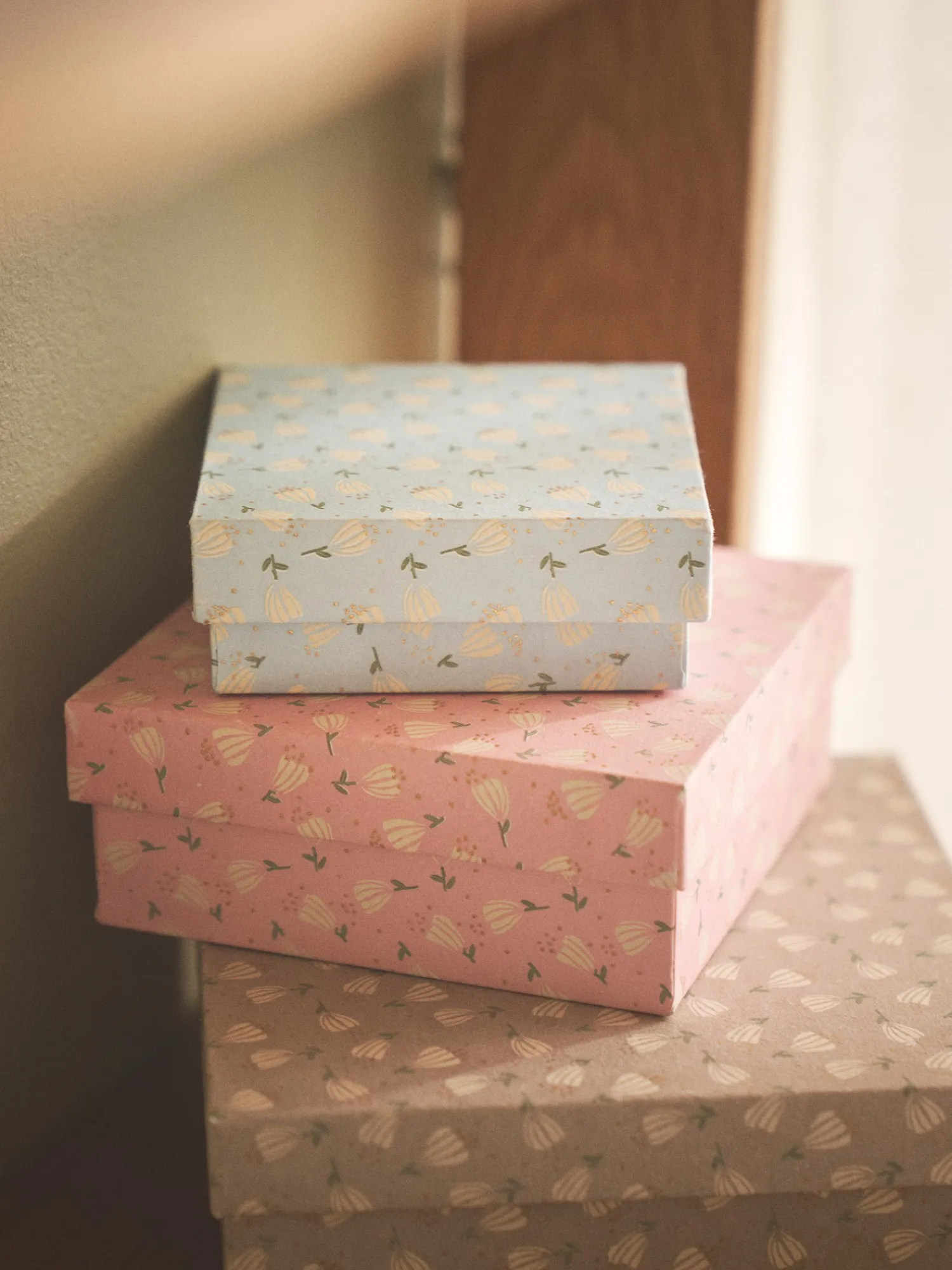 Søstrenes eske er laget av FSC®-sertifisert papir. Den er perfekt som en praktisk oppbevaringsløsning i boligen, eller som gaveinnpakning for bursdags- og julegaver.