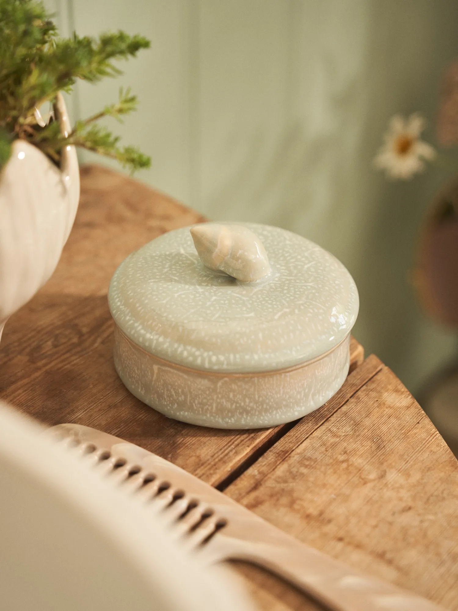 Søstrenes krukke er en nydelig bolig for små pyntegjenstander eller bare som en fin dekorasjon.Søstrene legger vennlig til at siden dette produktet har glasur, kan uttrykket variere noe.