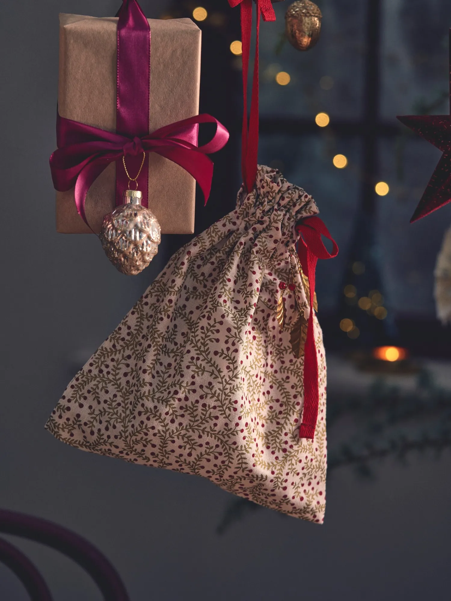 Søstrenes gavepose av bomull er STANDARD 100 by OEKO-TEX®-sertifisert, og den kan lukkes med en snor. Den er perfekt for å pakke inn gaver til noen De er glad i, og den kan brukes igjen og igjen.