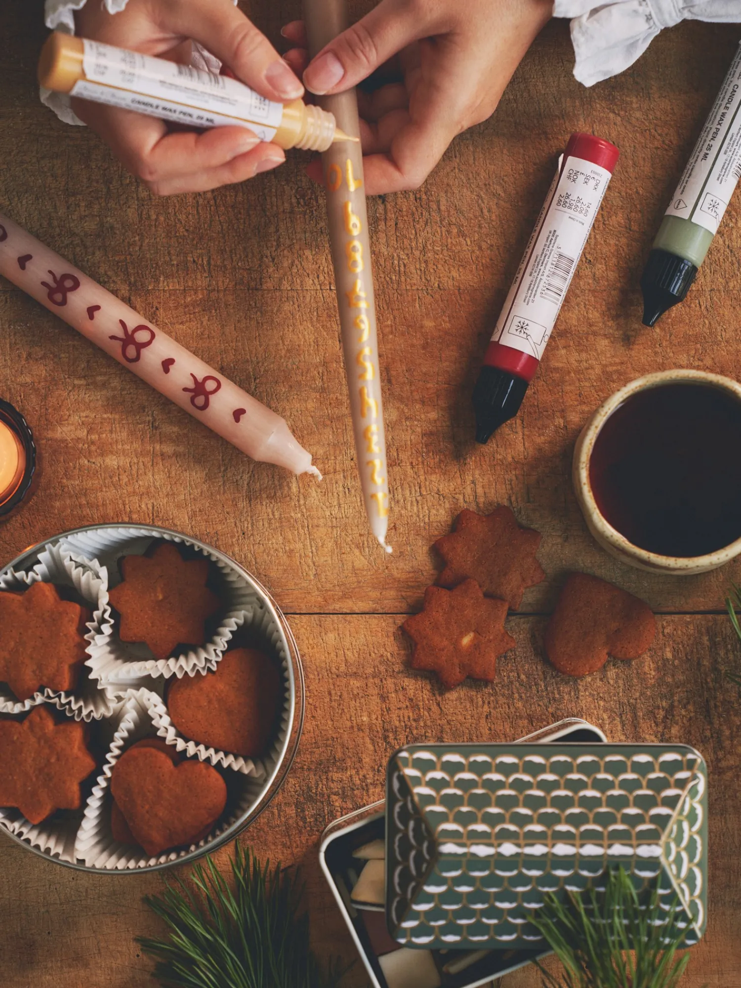 Med søstrenes lyspenn kan De dekorere lys ved å tegne på dem. Den bruker en maling av vann og bivoks som smelter på samme måte som lyset.