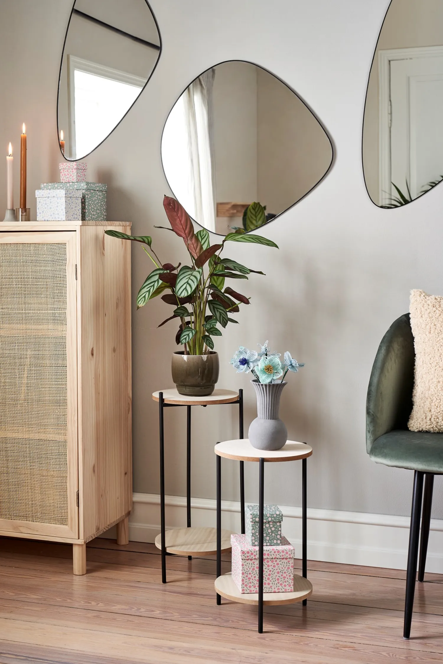 Søstrenes pidestall er laget av jern og 100 % FSC®-sertifisert MDF og poppel. Den er 27 x 27 x 46 cm. «En pidestall er en super løsning når du vil vise frem favorittplantene, blomstene og blomsterpottene dine», sier Anna med et smil. «Kombiner pidestaller i forskjellige høyder for å skape et dynamisk og iøynefallende element i interiøret.»