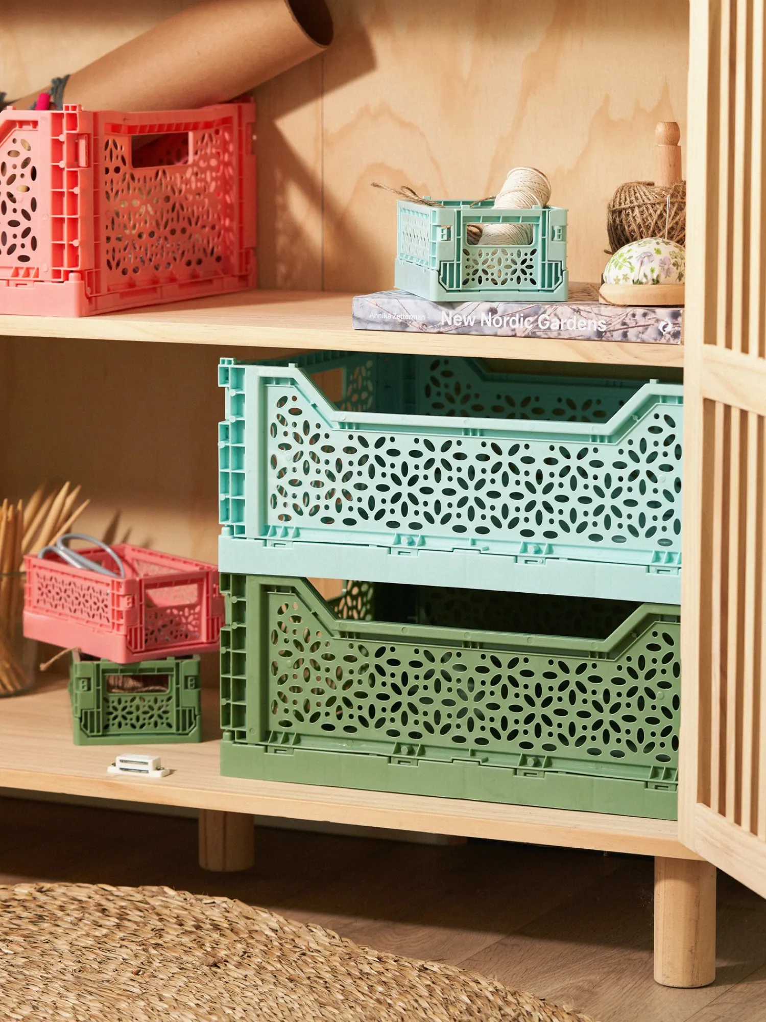 Søstrenes sammenleggbare eske er laget av 60 % GRS-sertifisert* resirkulert polypropylen, og den er 40 x 30 x 15 cm.Den er en praktisk oppbevaringsløsning som kan legges sammen når den ikke er i bruk.*Sertifisert av Ecocert Greenlife, lisensnummer 197533