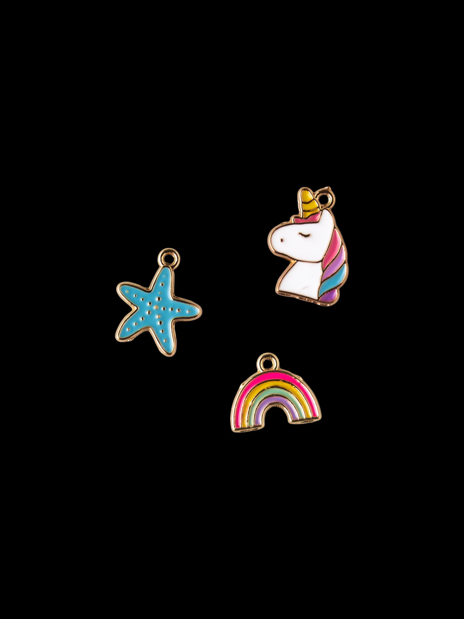 Søstrenes smykkeanheng består av én enhjørning på 15 x 19,5 mm, én regnbue på 15 x 11,6 mm og én sjøstjerne på 15 x 17,3 mm.«Kreative sysler er blant livets store gleder», mener Anna.