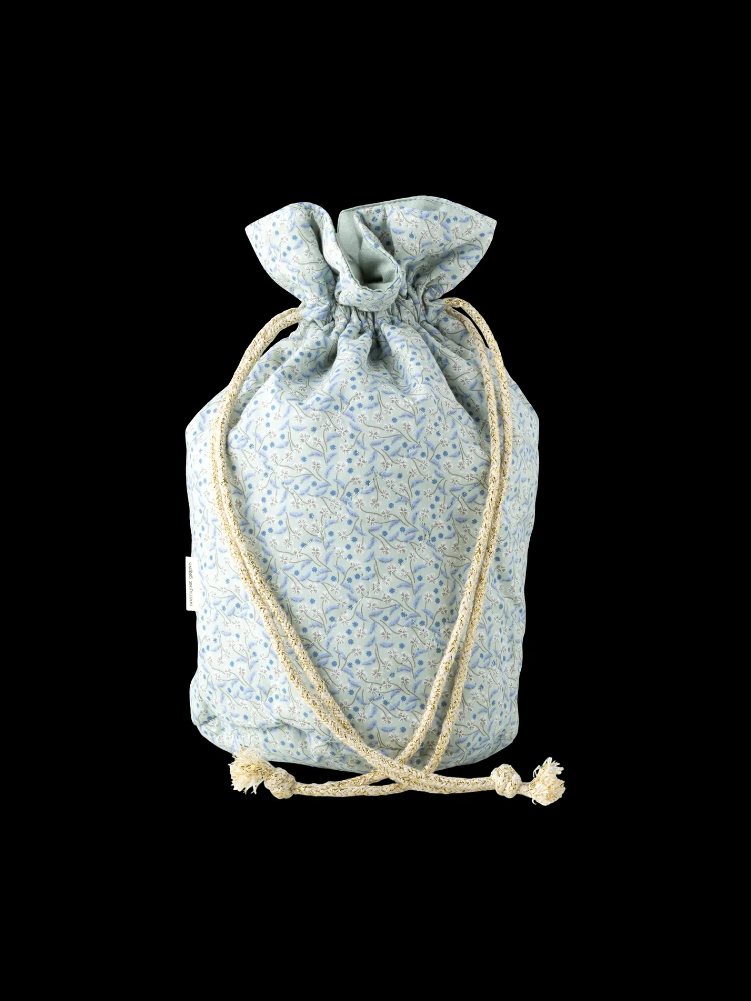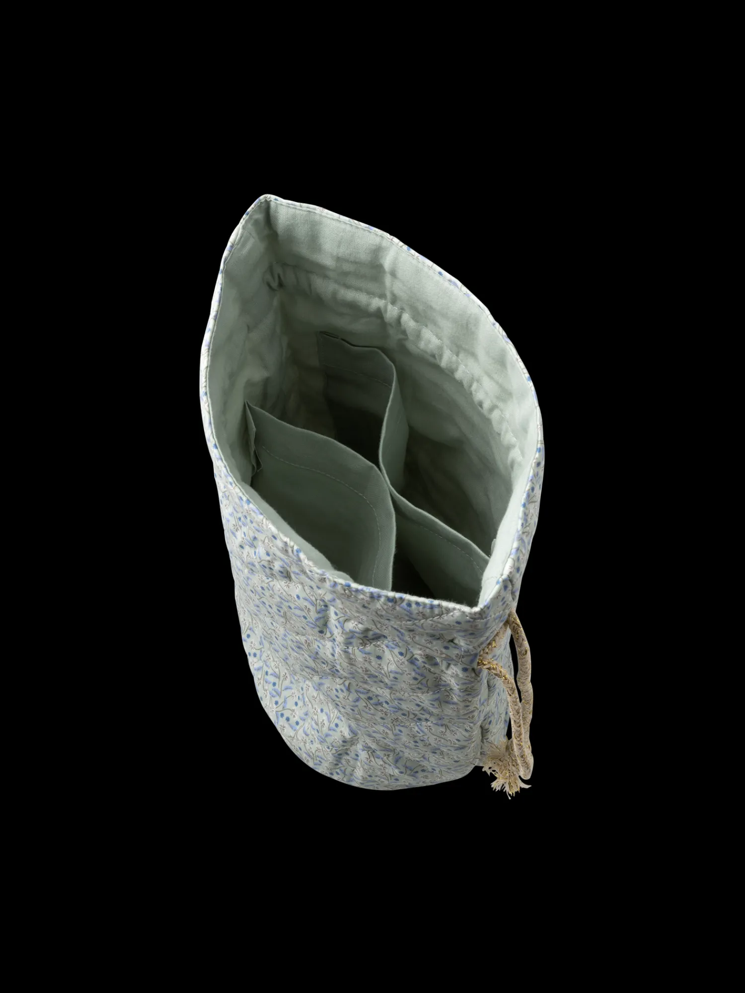 Søstrenes toalettveske er laget av GOTS-sertifisert* økologisk bomull, den har fôr av polyester, og den lukkes med en snor.*1132004 Control Union