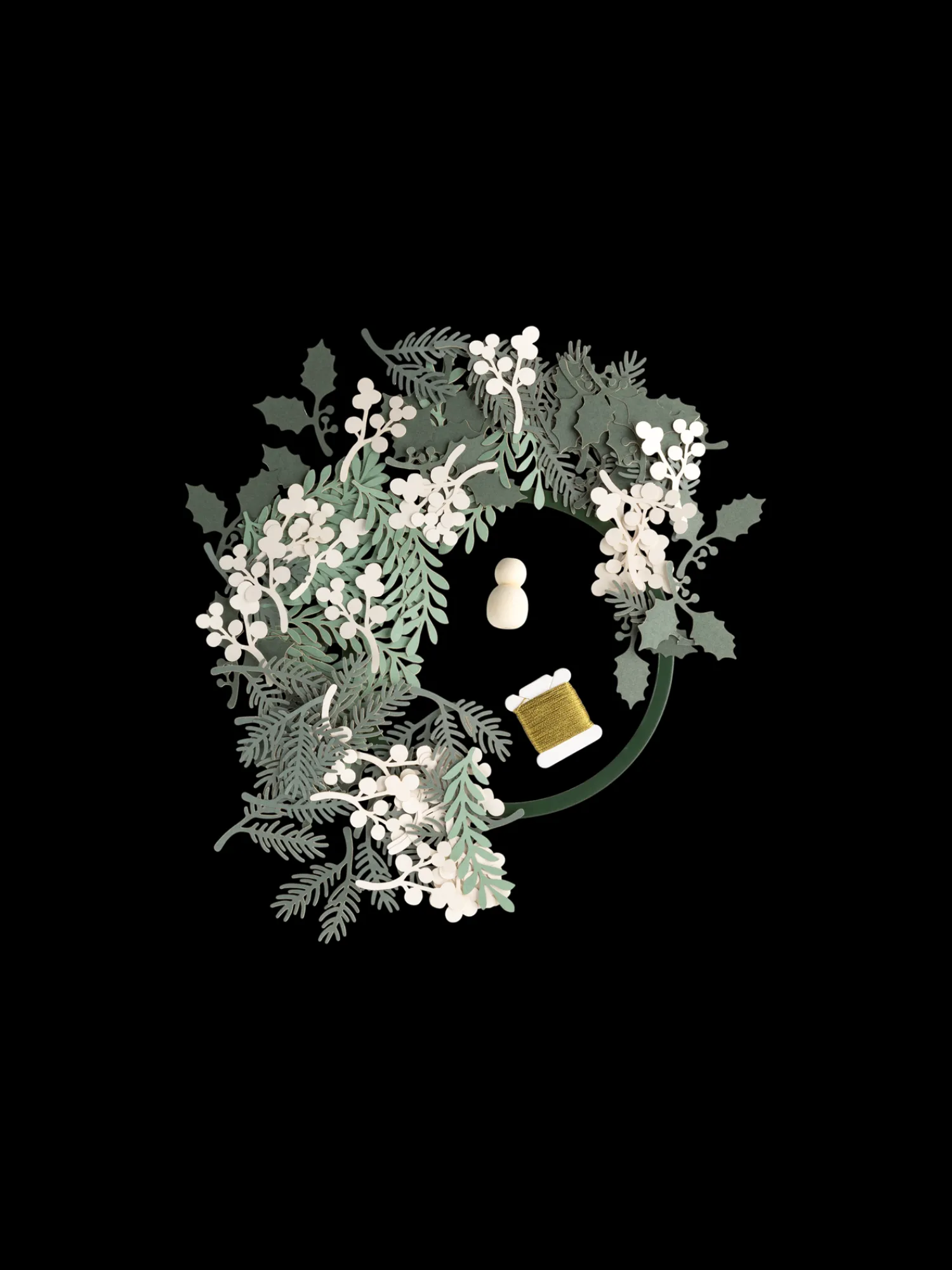 Søstrenes DIY-sett inneholder 100 % FSC®-sertifisert papir og treperler samt tråd til en hempe på kransen. Settet er nok til én krans.