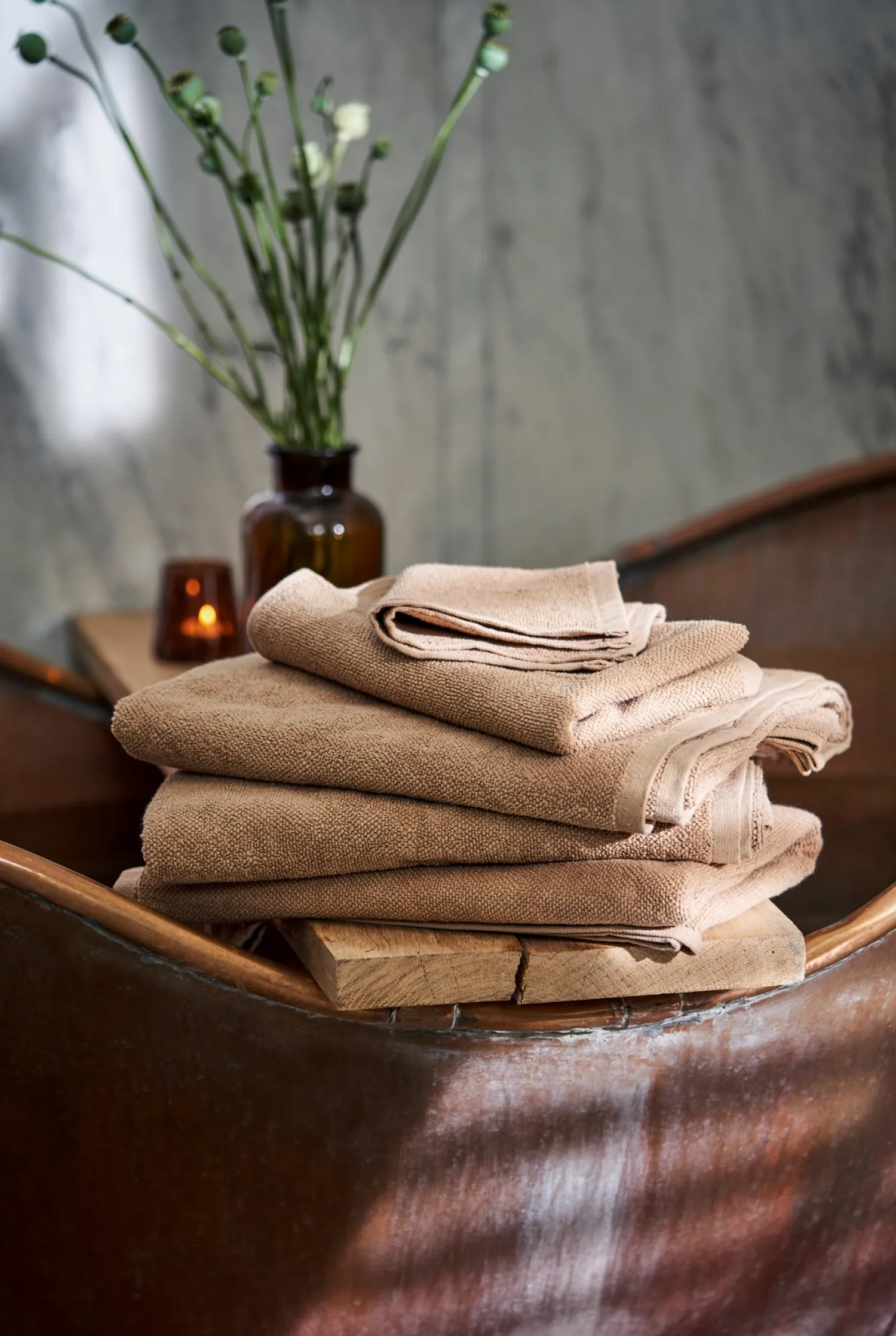 Søstrenes håndkle er laget av bomull, og det er 140 x 70 cm.