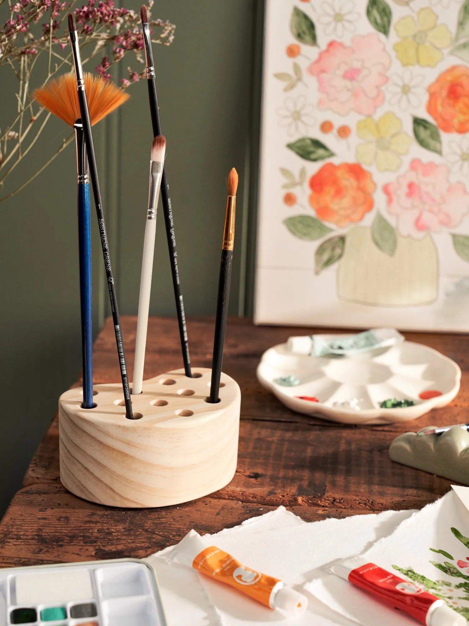 Søstrenes penselholder er laget av FSC®-sertifisert furu.
