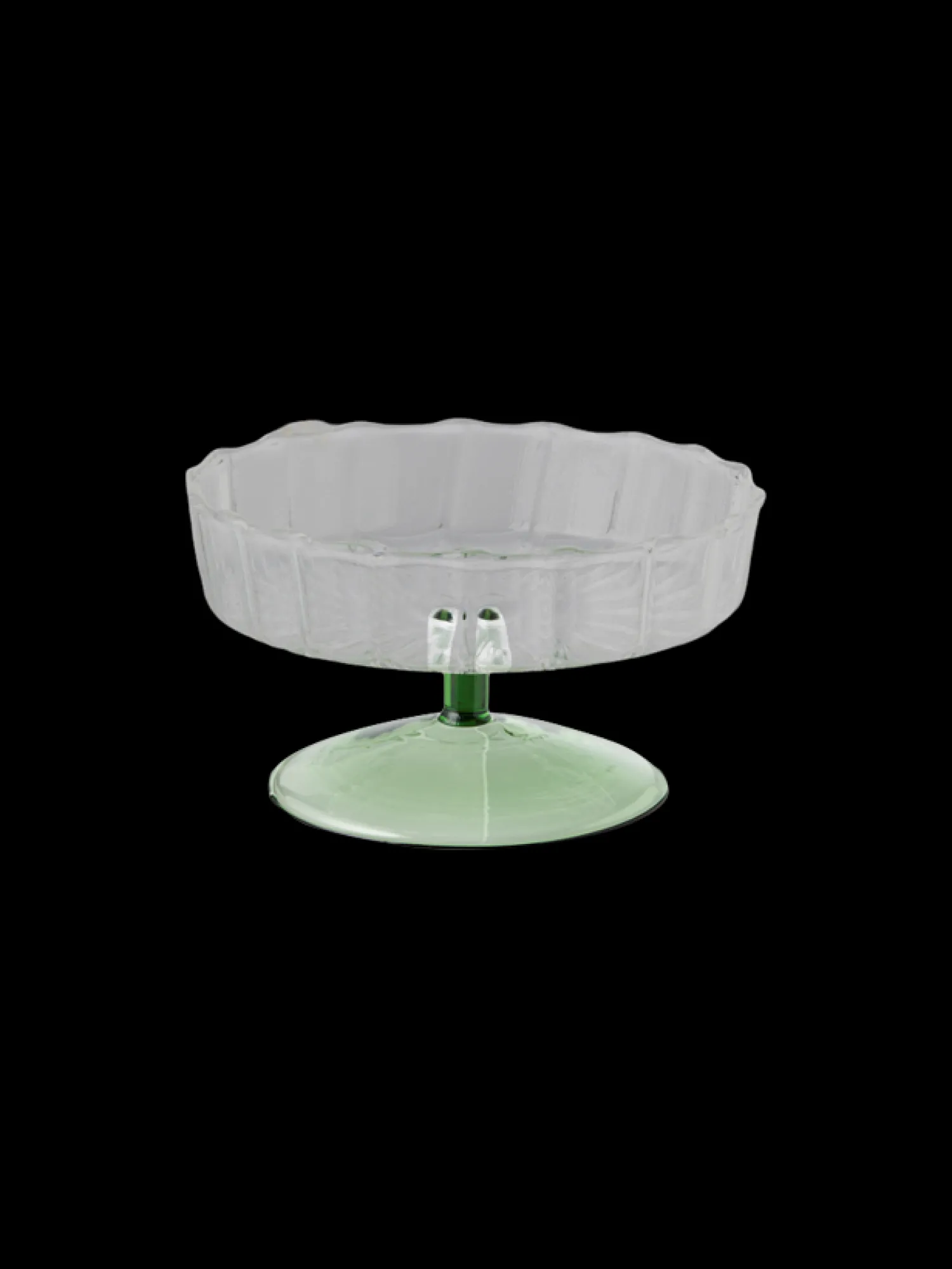 Søstrenes bolle er laget av glass, og den er Ø15 x 8,5 cm. Den har farget stett.