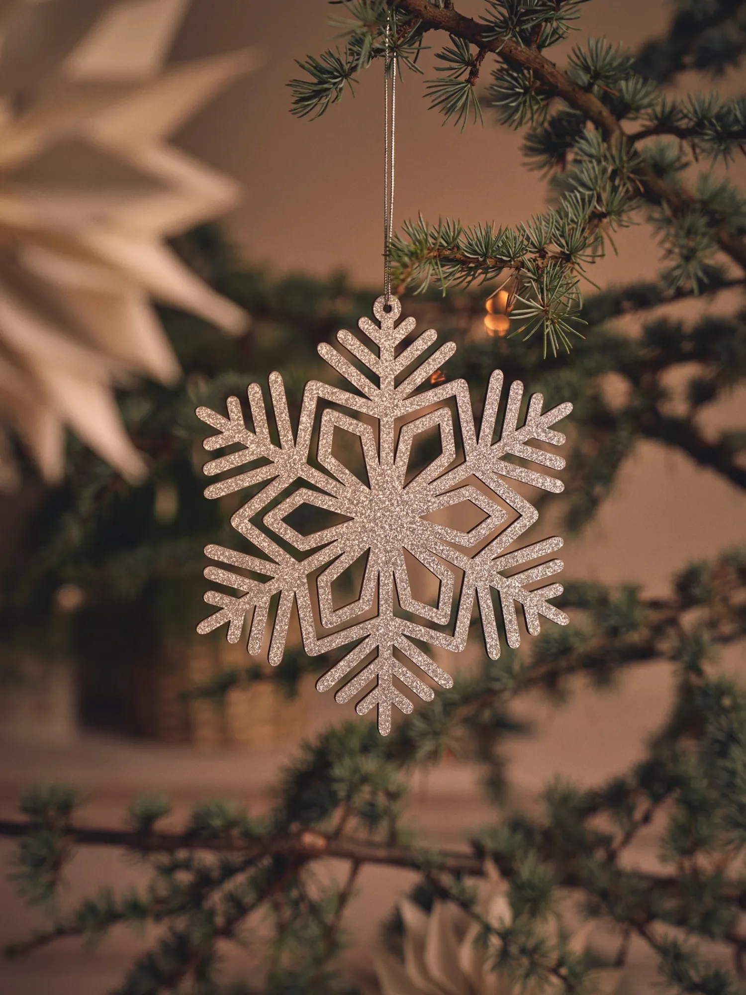 Søstrenes hengende snøkrystall er laget av FSC®-sertifisert poppel.La den skinne for seg selv, eller lag en magisk kombinasjon ved å henge den sammen med andre snøkrystaller og stjerner av papir.