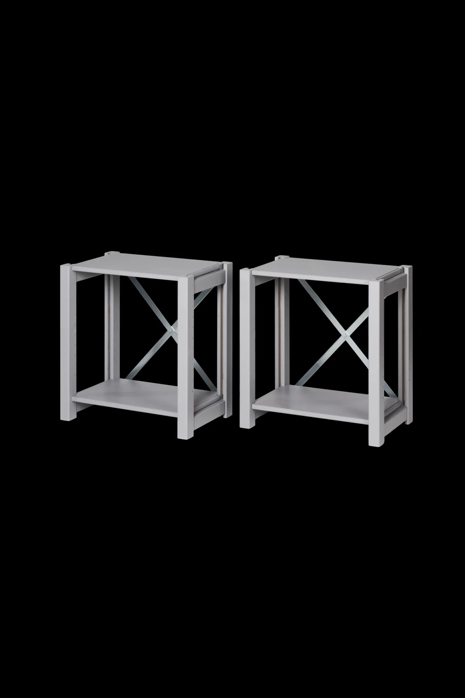 Disse nattbordene fra det danske merket ABC Classic har en klassisk design, og de er laget av lys furu som fremhever treverkets vakre, naturlige kvaliteter – inkludert kvistene. Dette gjør hvert møbel vidunderlig unikt. Hvert lille nattbord har to hyller, inkludert toppen, og de har god plass til alt De trenger ved sengen. Det kan også brukes som et flott sidebord.Søstrene legger vennlig til at nattbordene må monteres.