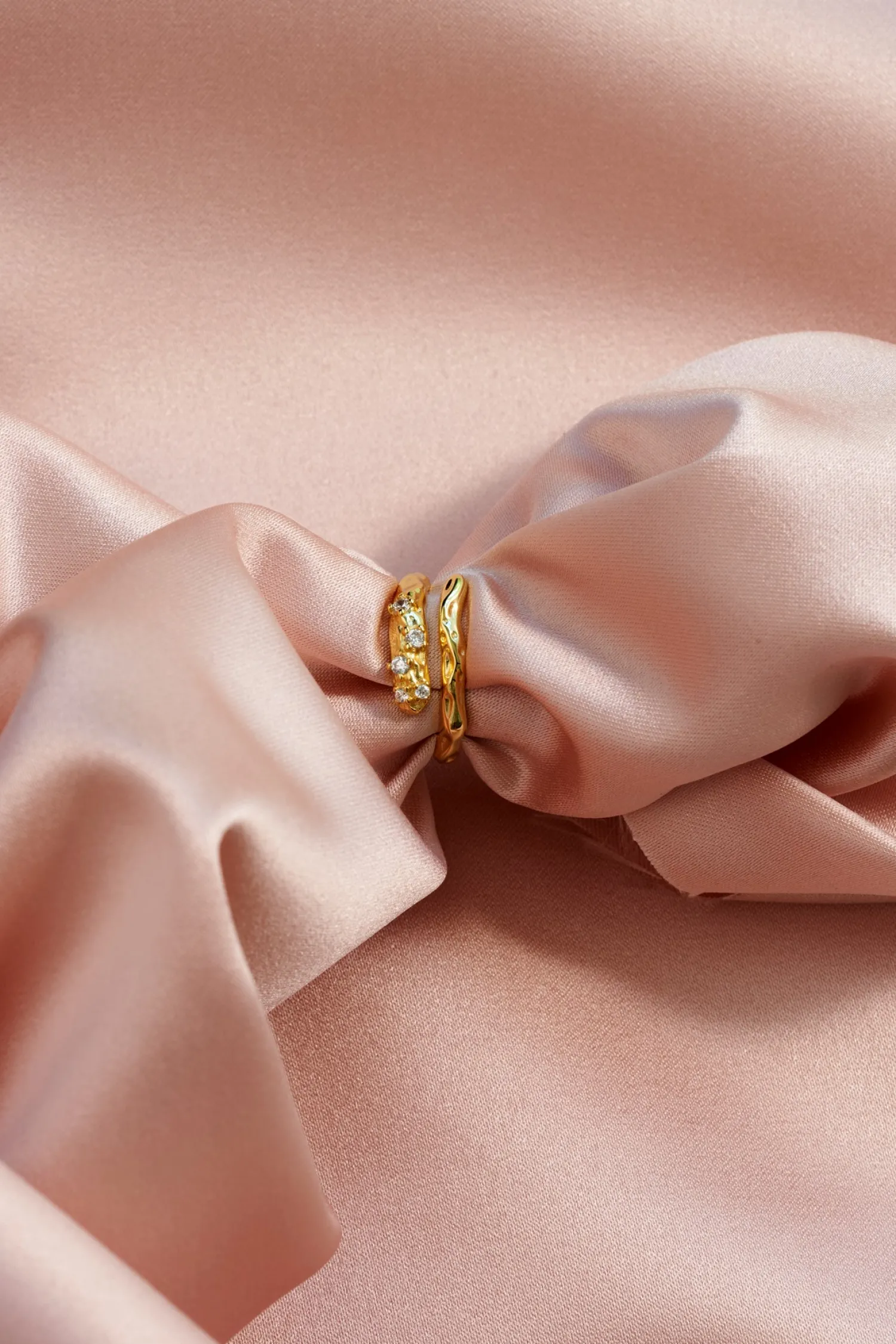 Søstrene minner vennlig om at dette produktet bare er tilgjengelig på nett.Shiny Twist-ringen er laget av 925 sterlingsølv som er belagt med 18 karat gull, og den har også noen kubisk zirkonia-steiner. Ringens størrelse kan justeres, og den leveres i et fin liten smykkeeske. «Kubisk zirkonia-steinene på ringen får den til å glitre», sier Clara med et smil. «En elegant ring som er vakker for seg selv, men som også kan brukes sammen med andre ringer.» Anna og Clara minner vennlig om at De bør unngå direkte kontakt med fuktighet og væsker, slik at gullbelegget varer lenger.