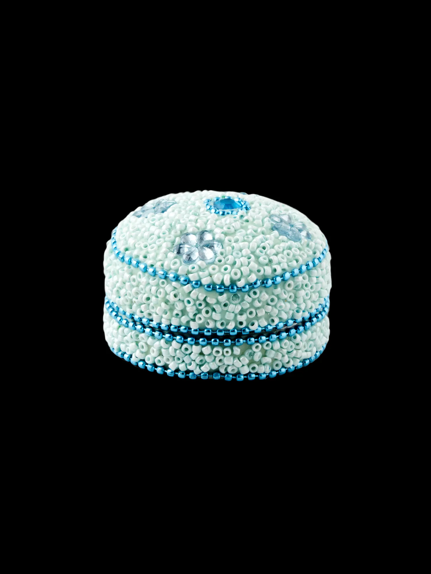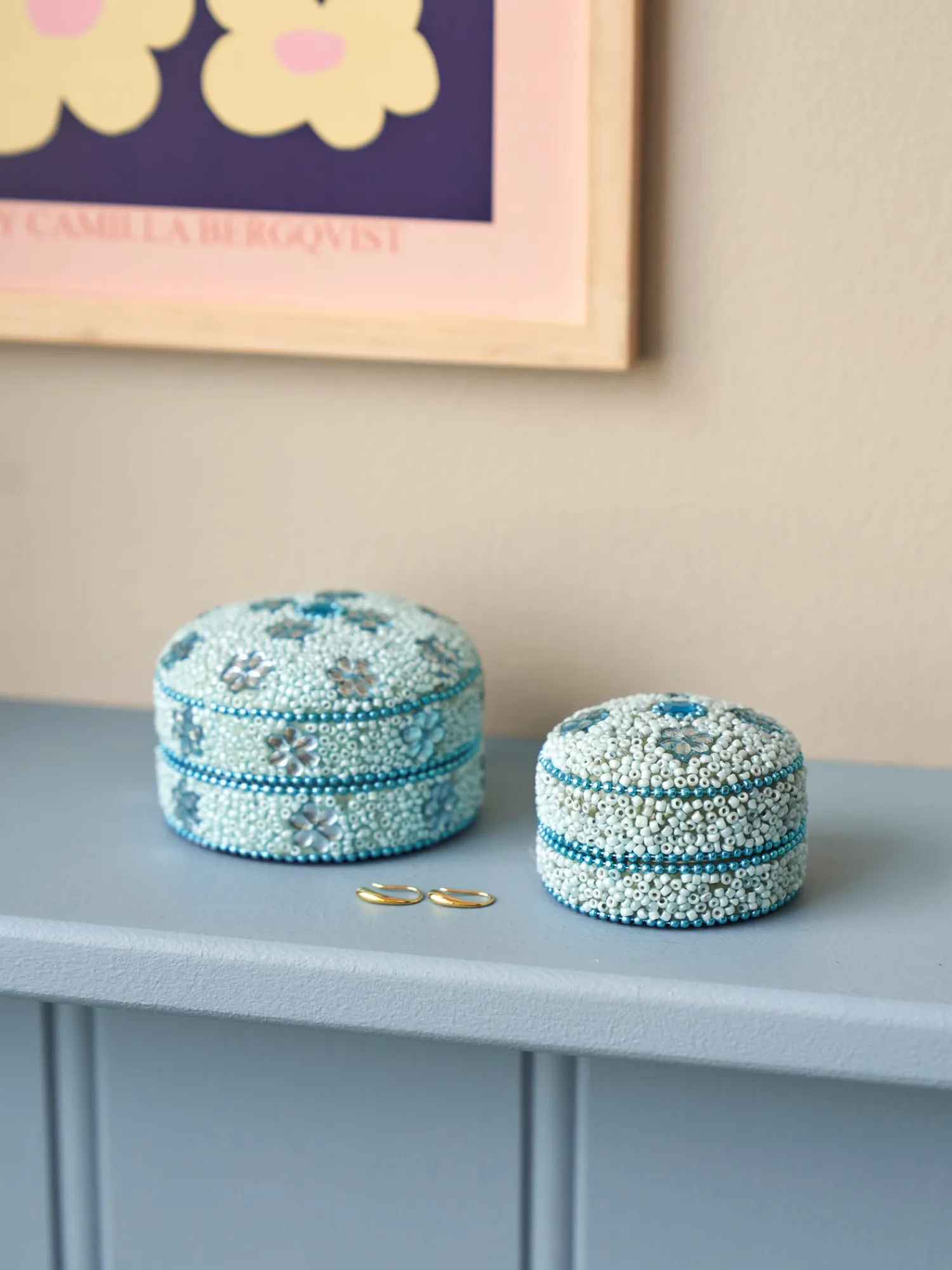 Søstrenes smykkeskrin er laget av aluminium, og det er 5,5 cm i diameter og 4 cm høyt.