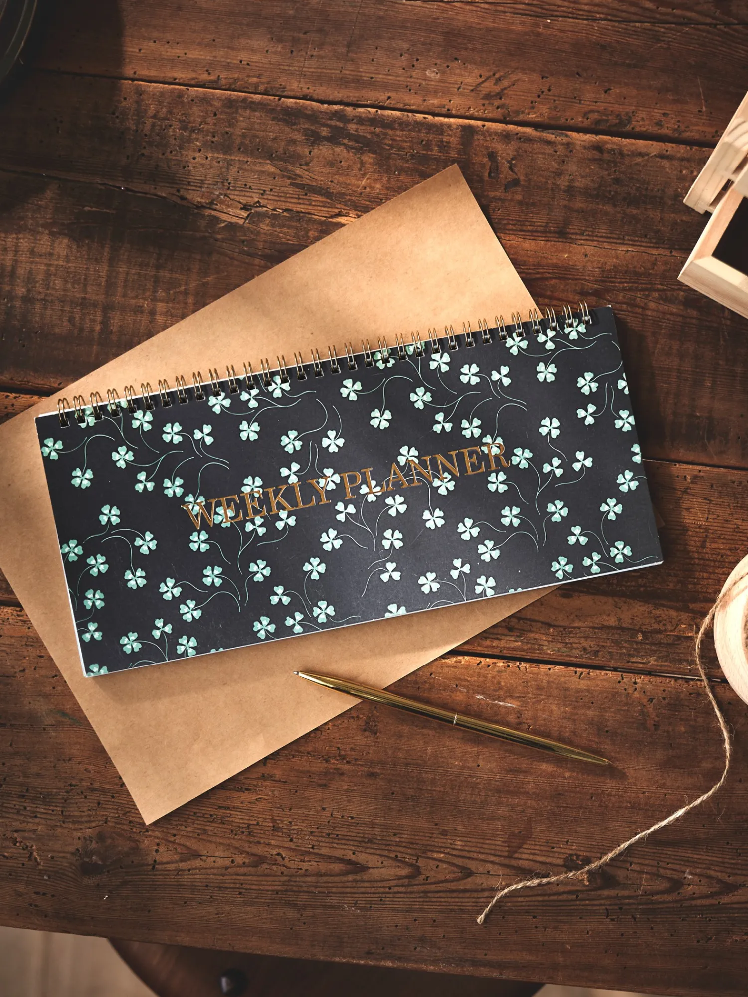 Søstrenes ukesplanlegger er FSC®-sertifisert. Den holdes sammen med en spiral øverst.