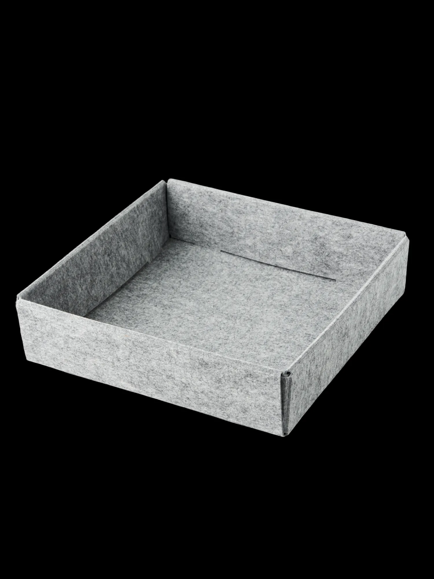 Søstrenes oppbevaringskurv er laget av polyesterfilt. Når den er montert, er den 24 x 24 x 6 cm, og den kan legges sammen når den ikke er i bruk.«Bruk myke kurver som disse til å oppbevare ting og tang, hobbyartikler eller til og med små leker på barnerommet», foreslår Anna med et smil.